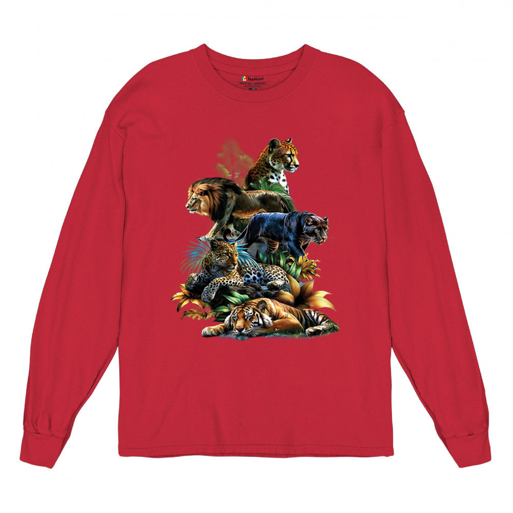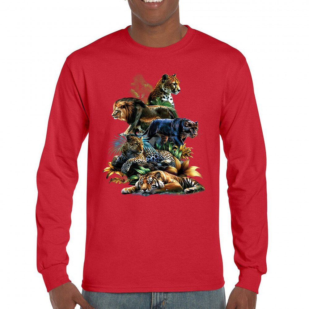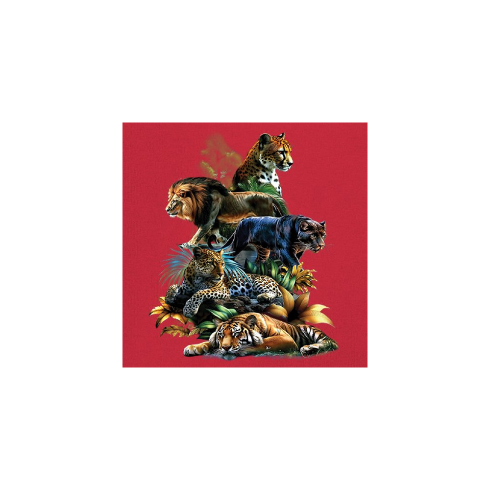 Bold big cat design with lion, tiger, leopard, cheetah, jaguar, and panther. A vivid tribute to wild nature, pride, and animal power.