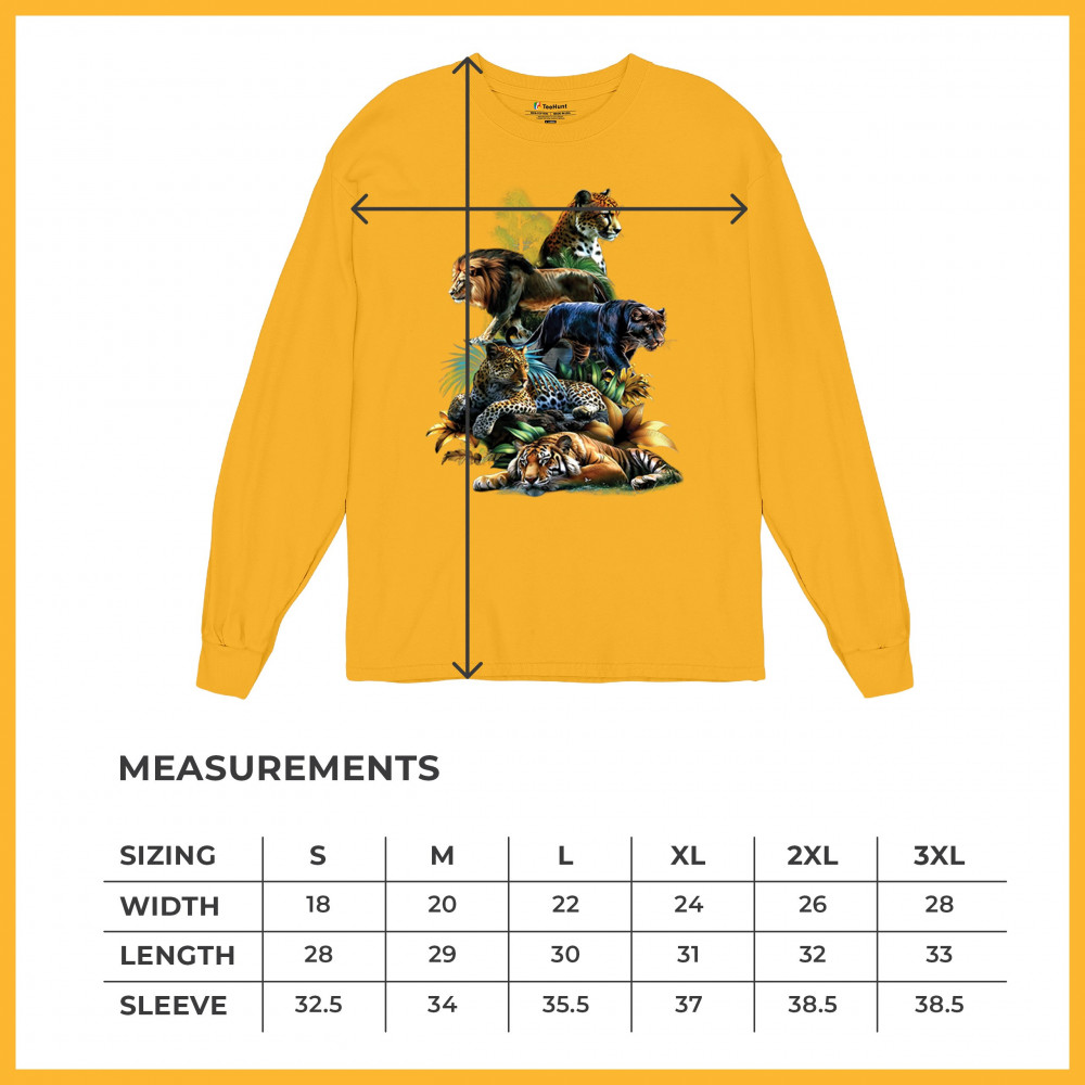 Celebrate raw power and untamed beauty with this stunning big cat design featuring lion, tiger, cheetah, black panther, jaguar, and leopard. Surrounded by vivid jungle foliage, each animal radiates strength, pride, and wild spirit. Perfect for fans of nature, safari vibes, wildlife preservation, and fierce animal energy.