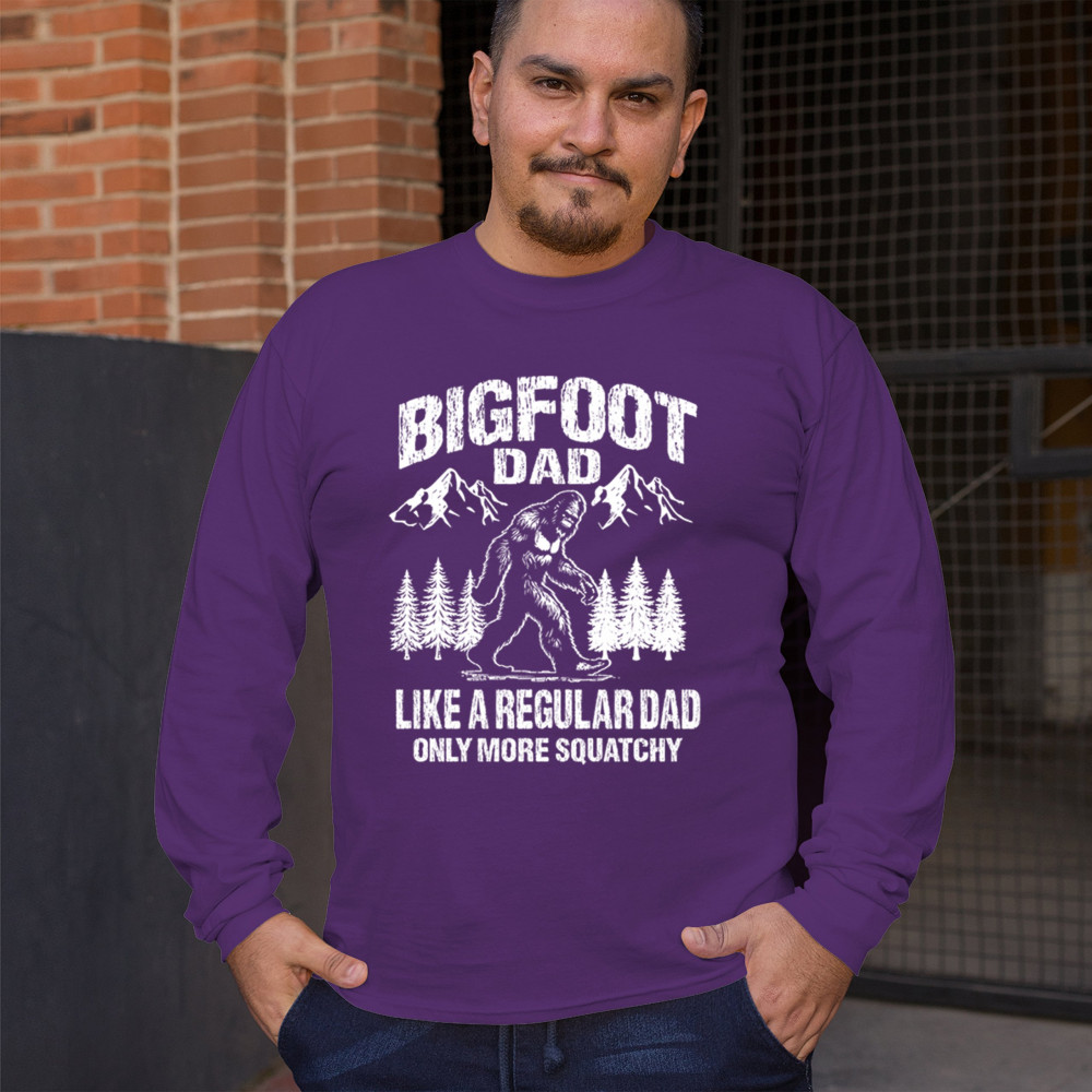 Celebrate dad with the "Bigfoot Dad" design—perfect for adventurous fathers, Sasquatch fans, and outdoor lovers. A unique gift for any occasion!