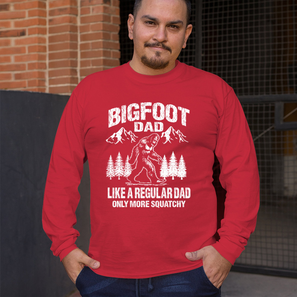Celebrate dad with the "Bigfoot Dad" design—perfect for adventurous fathers, Sasquatch fans, and outdoor lovers. A unique gift for any occasion!