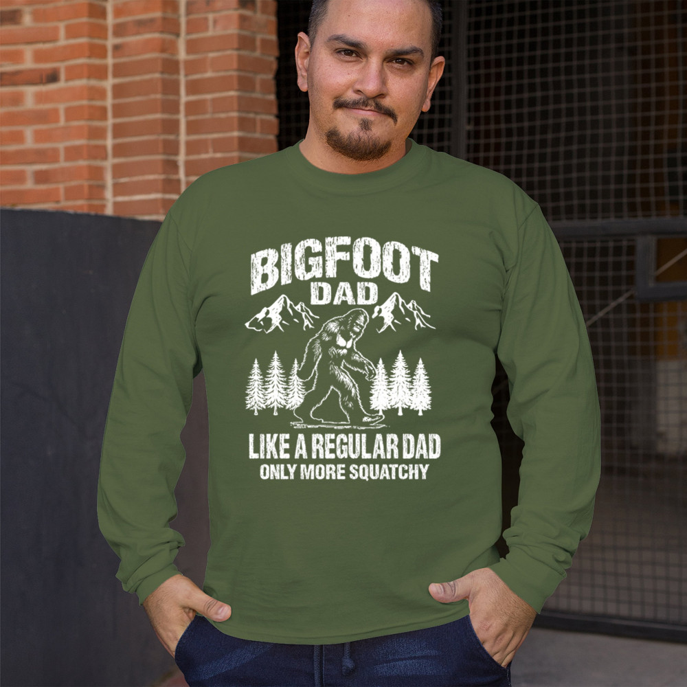 Celebrate dad with the "Bigfoot Dad" design—perfect for adventurous fathers, Sasquatch fans, and outdoor lovers. A unique gift for any occasion!