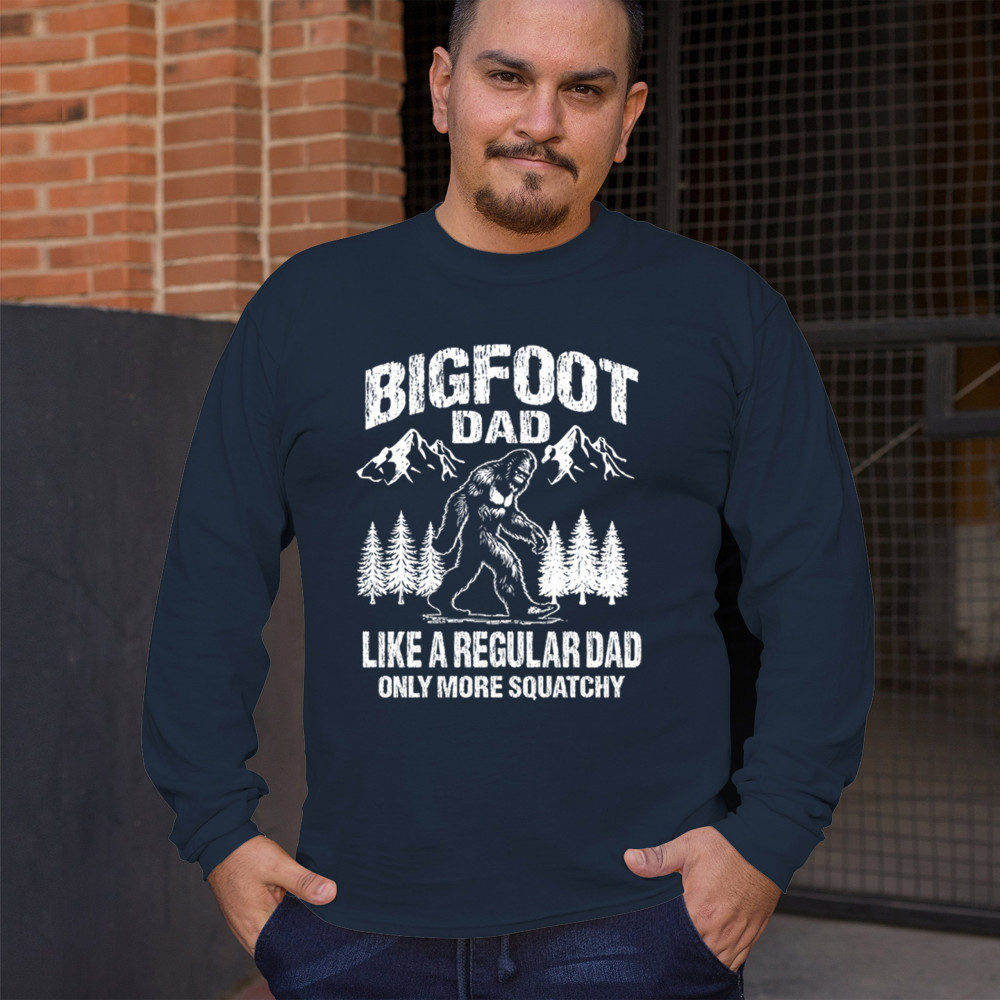 Celebrate dad with the "Bigfoot Dad" design—perfect for adventurous fathers, Sasquatch fans, and outdoor lovers. A unique gift for any occasion!