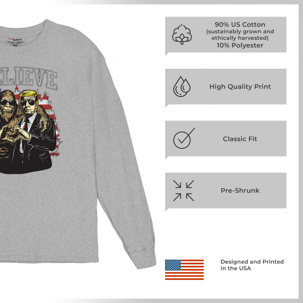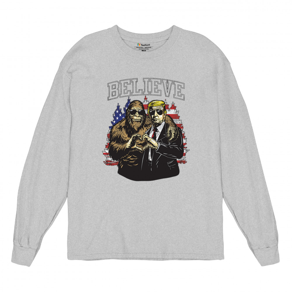 Show your belief with Trump and Bigfoot! Celebrate America First, the Red Wave, and conservative pride with this unique and patriotic design.
