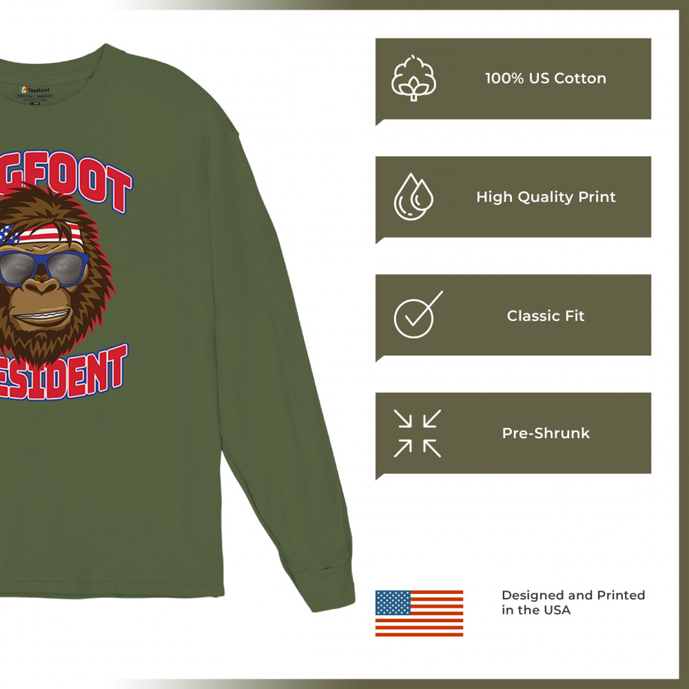 Embrace your quirky side with our "Bigfoot for President" design, showcasing the legendary Bigfoot in stylish sunglasses and a patriotic bandana. This unique and humorous design is perfect for casual wear, parties, or simply standing out from the crowd. Crafted from premium materials, it offers both comfort and durability, making it ideal for all-day wear. Whether you're a Bigfoot enthusiast or just love fun fashion, this design is a must-have addition to your wardrobe. Shop now and join the Bigfoot movement!