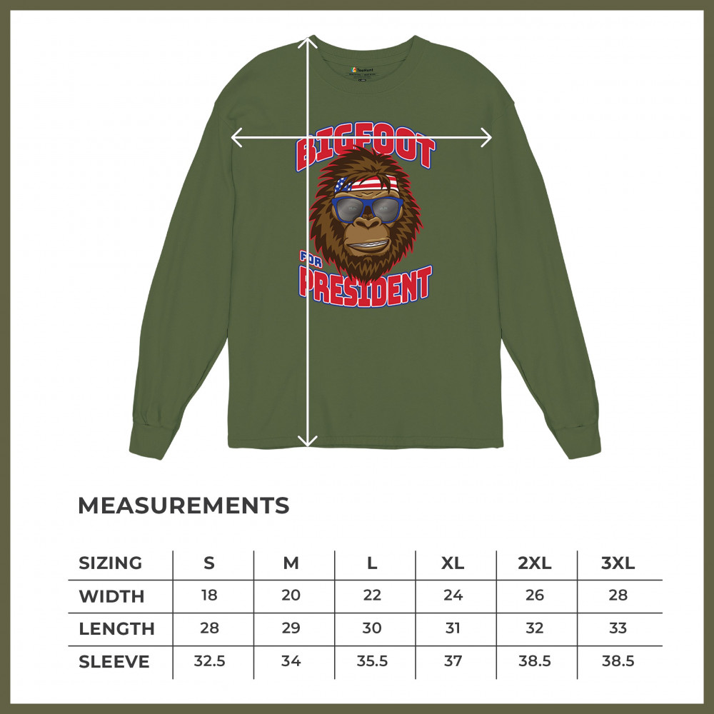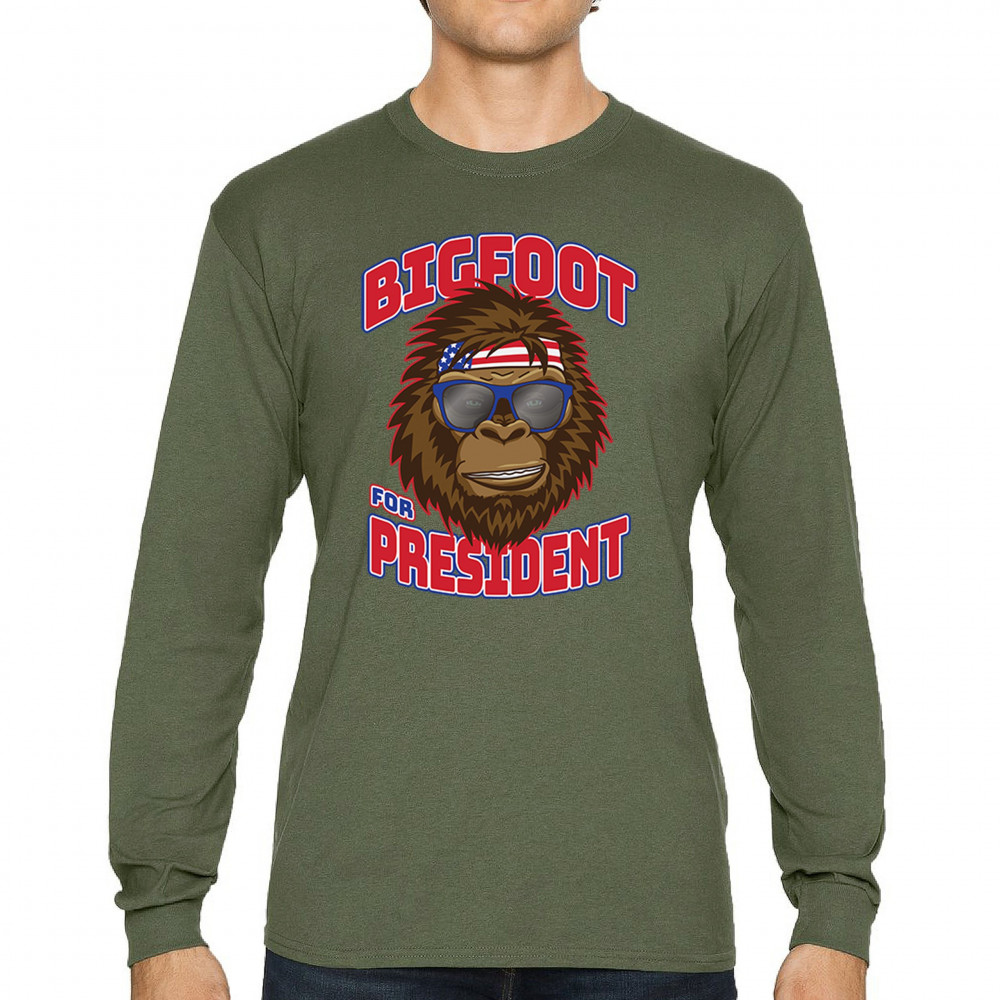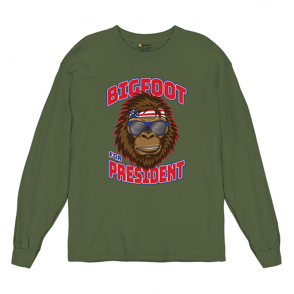 Show off your quirky style with the "Bigfoot for President" design. Perfect for casual wear and parties, featuring Bigfoot in sunglasses and a patriotic bandana.
