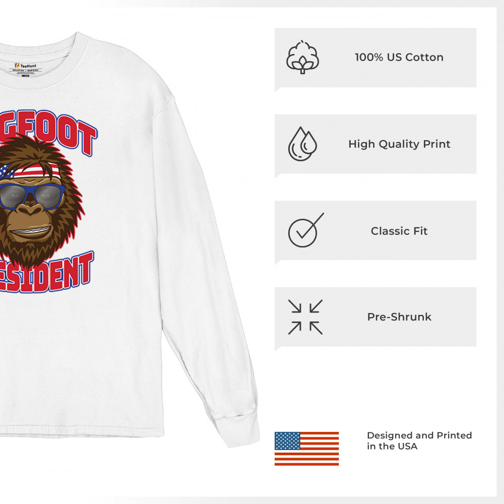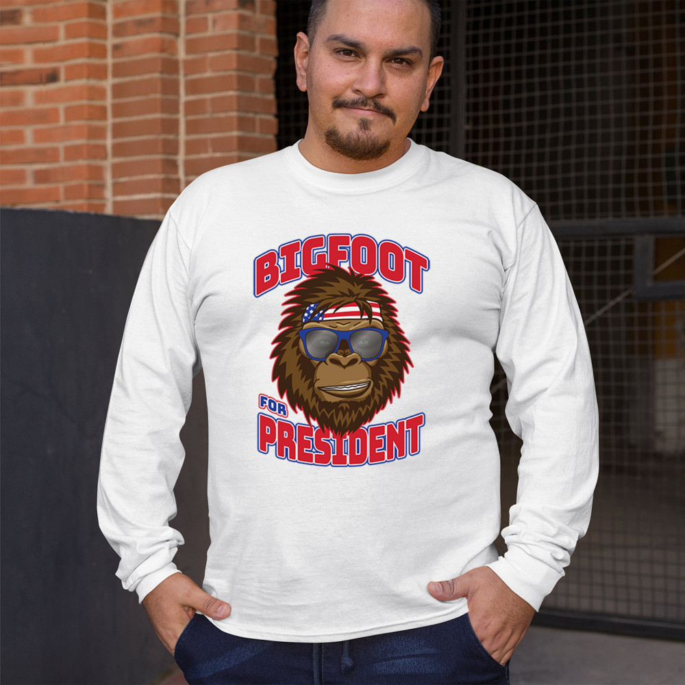 Show off your quirky style with the "Bigfoot for President" design. Perfect for casual wear and parties, featuring Bigfoot in sunglasses and a patriotic bandana.