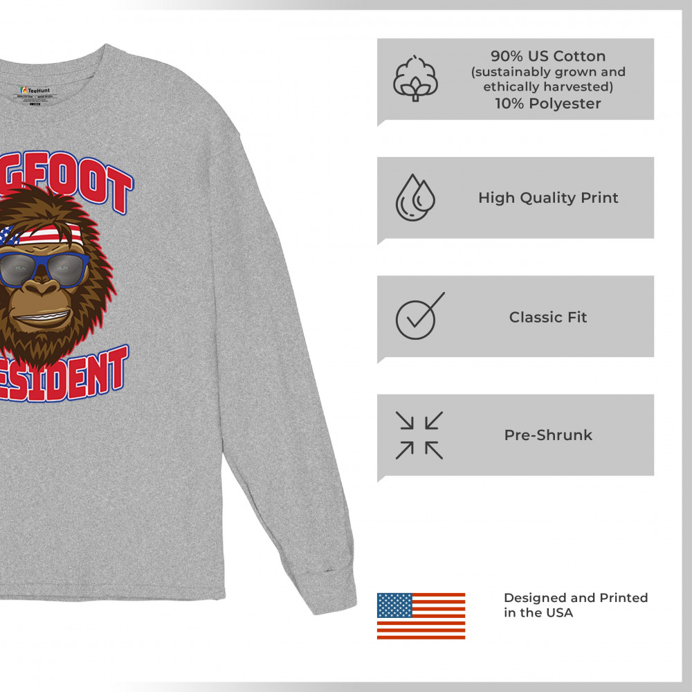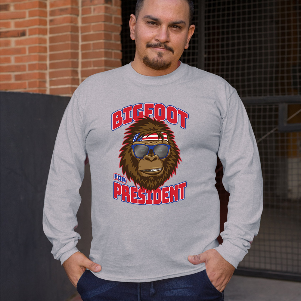 Show off your quirky style with the "Bigfoot for President" design. Perfect for casual wear and parties, featuring Bigfoot in sunglasses and a patriotic bandana.