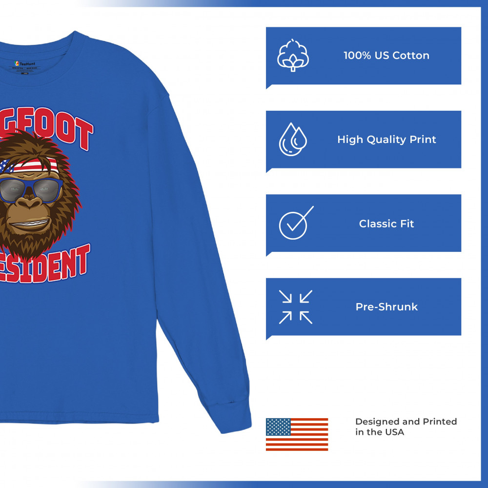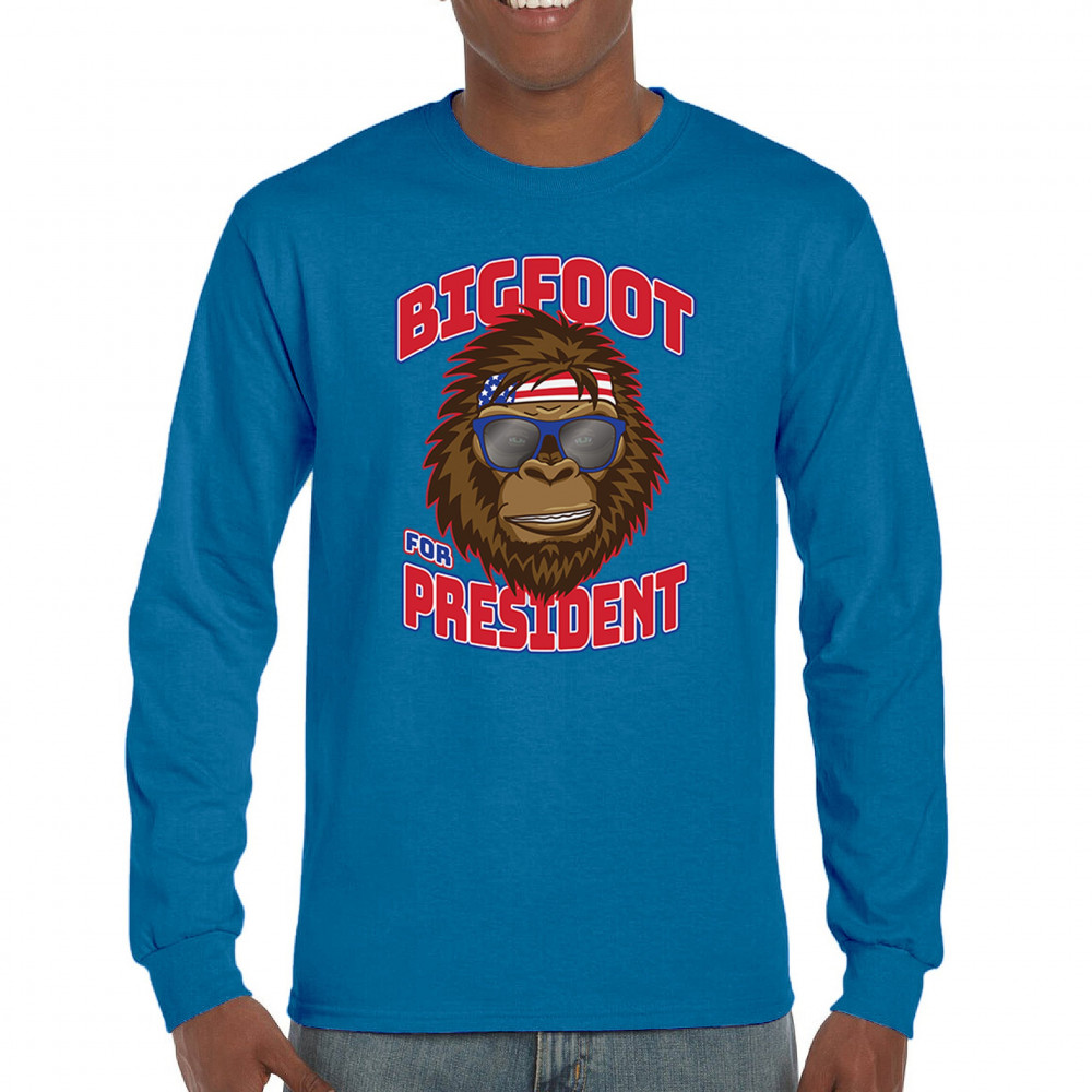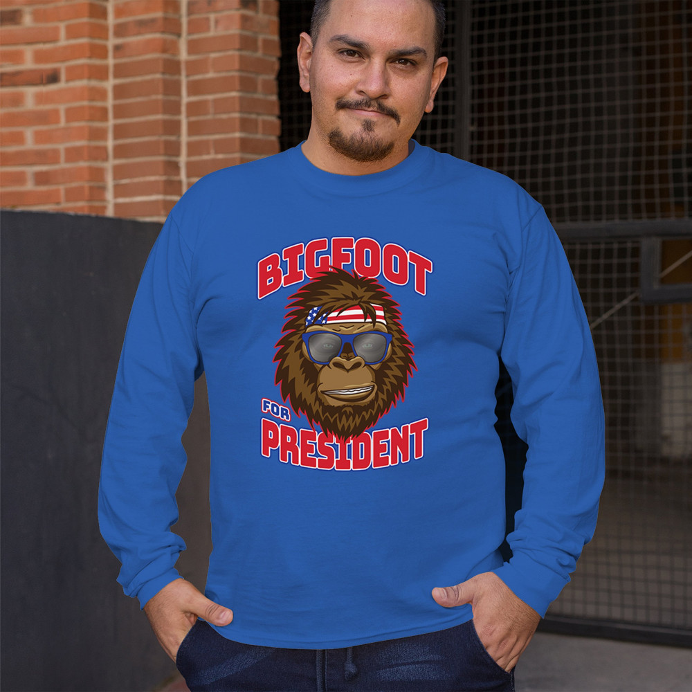 Show off your quirky style with the "Bigfoot for President" design. Perfect for casual wear and parties, featuring Bigfoot in sunglasses and a patriotic bandana.