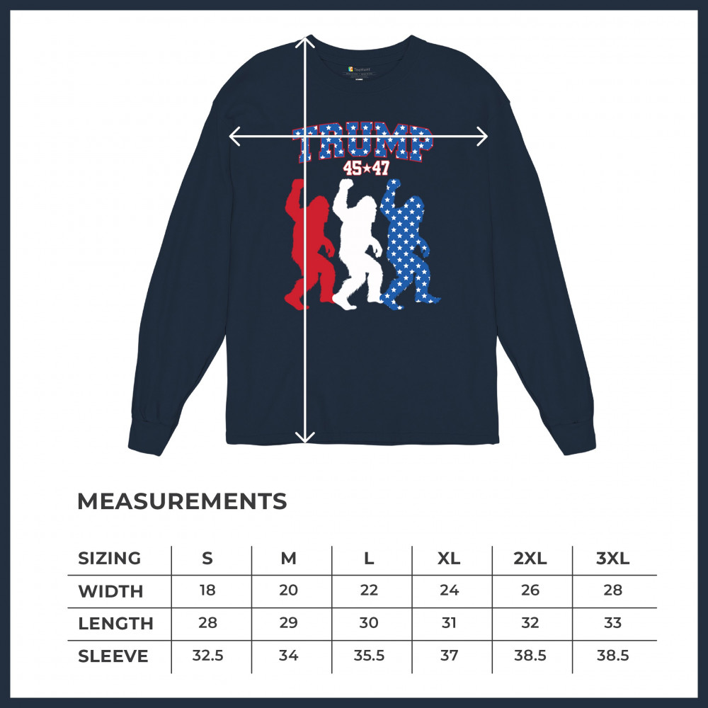 Unite humor and patriotism with the Trump 45/47 Bigfoot design! Featuring bold red, white, and blue Bigfoot silhouettes adorned with American flag stars, this eye-catching design supports Donald J. Trump, the Republican party, and the Red Wave movement. Embrace the fight for common sense, America First, and the people's mandate with this unique and fun statement piece.