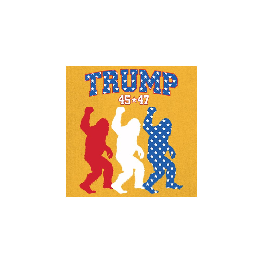 Unite humor and patriotism with the Trump 45/47 Bigfoot design! Featuring bold red, white, and blue Bigfoot silhouettes adorned with American flag stars, this eye-catching design supports Donald J. Trump, the Republican party, and the Red Wave movement. Embrace the fight for common sense, America First, and the people's mandate with this unique and fun statement piece.