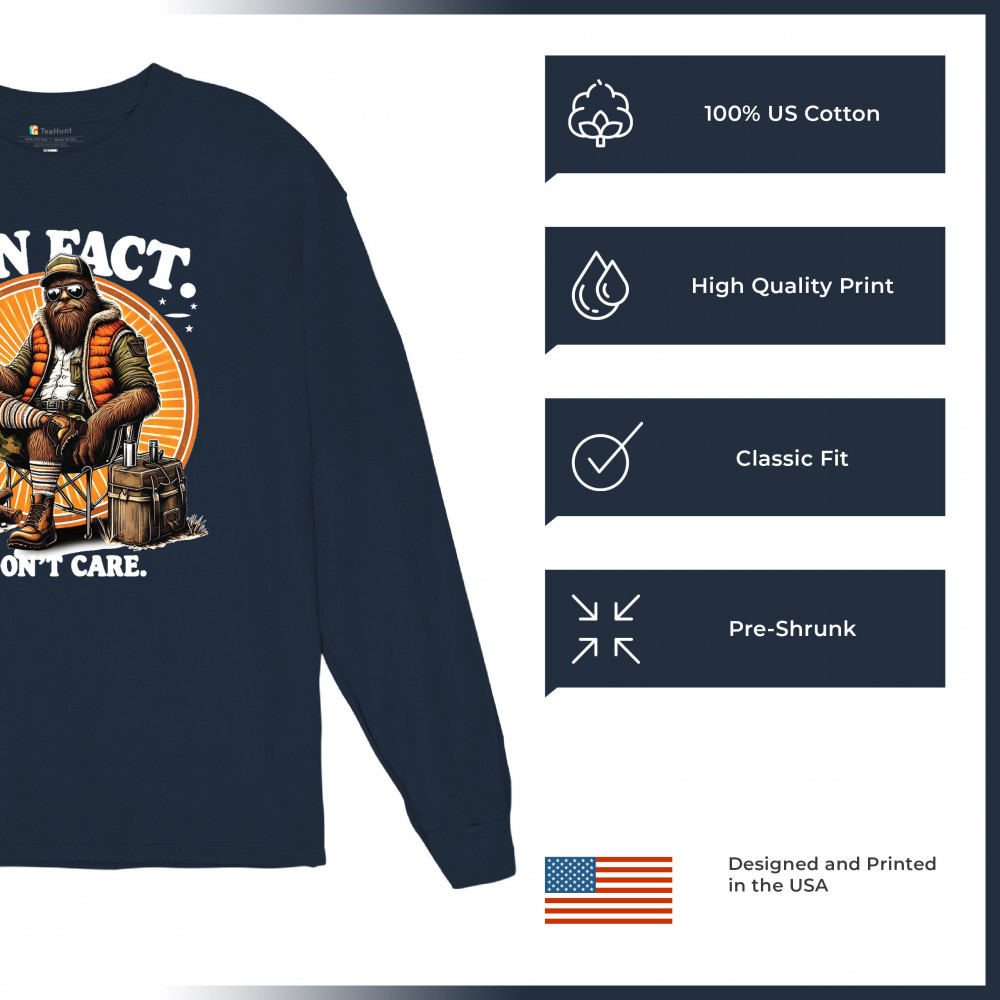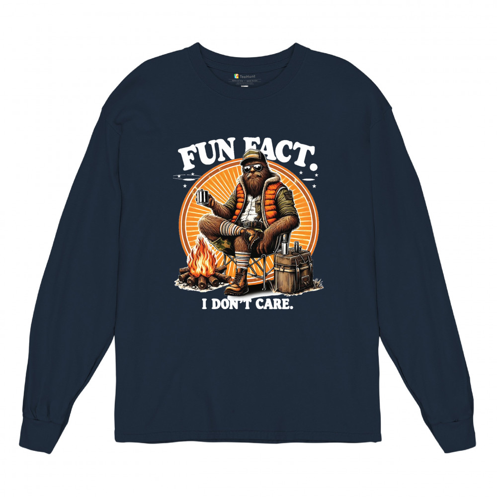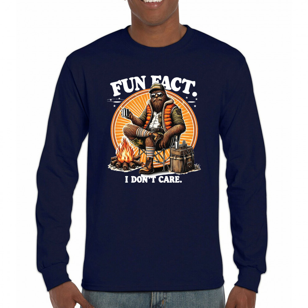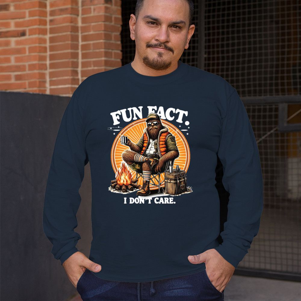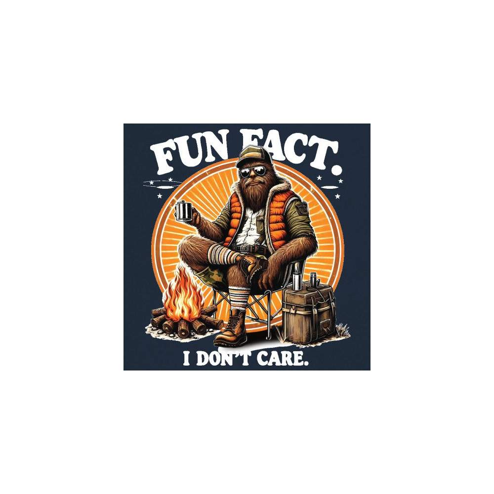 Funny Bigfoot Fun Fact design with cryptid humor, sarcastic outdoors shirt vibe, retro Sasquatch saying, USA pride, and camping adventure style.