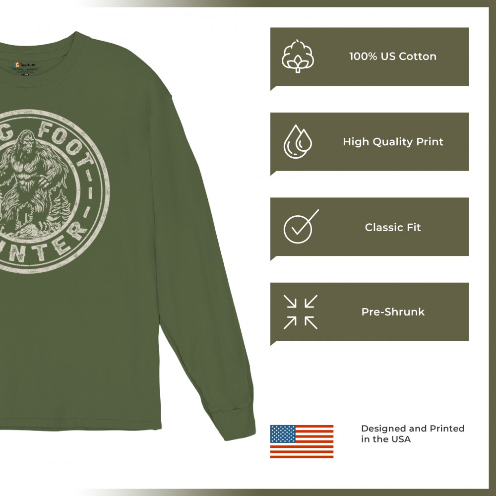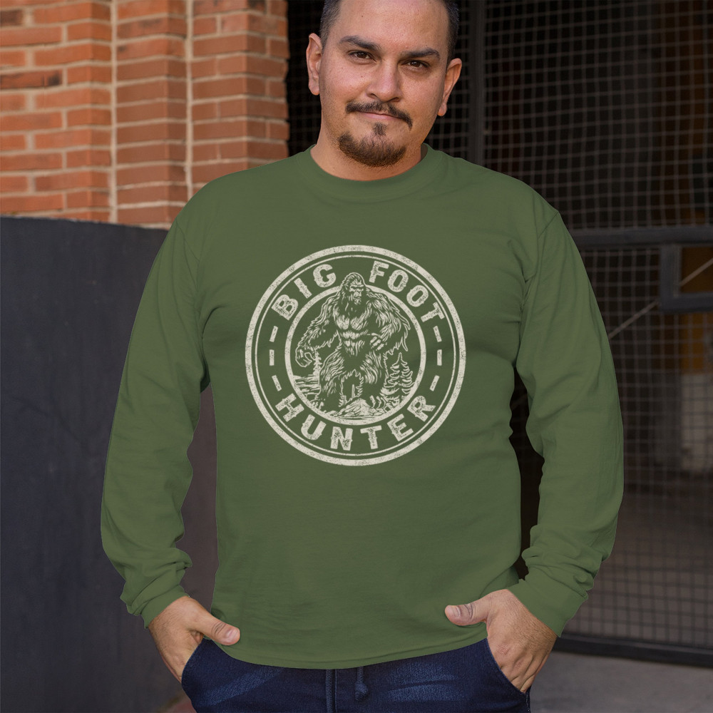 Capture the spirit of adventure with the "Bigfoot Hunter" design! Perfect for cryptid fans and outdoor enthusiasts, featuring a bold Sasquatch graphic.