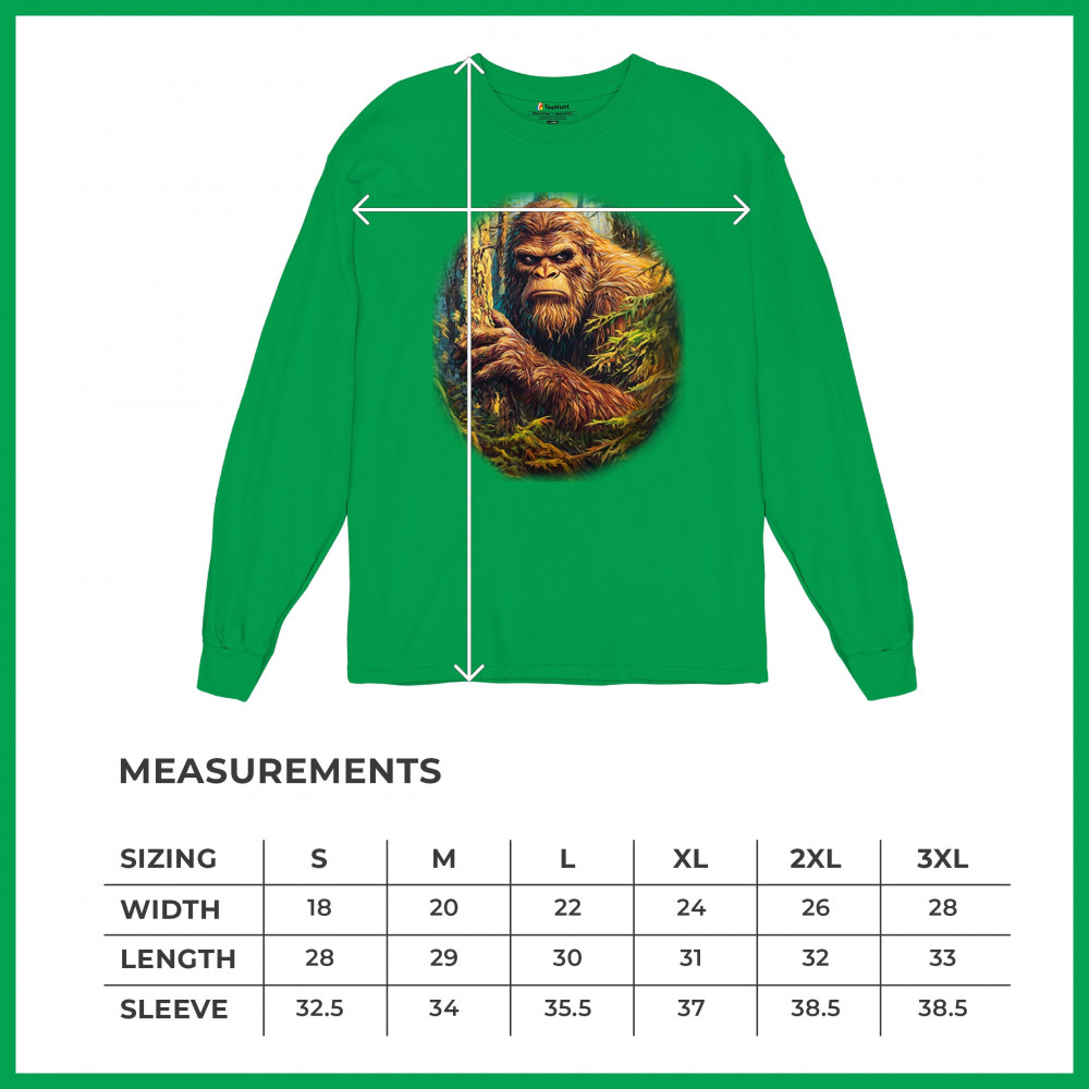Detailed Bigfoot design with forest mystery vibes for cryptid fans, hikers, and Sasquatch lovers. Bold, outdoorsy, and perfect for adventurers.
