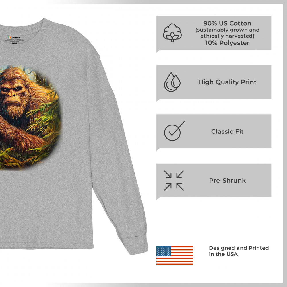 Detailed Bigfoot design with forest mystery vibes for cryptid fans, hikers, and Sasquatch lovers. Bold, outdoorsy, and perfect for adventurers.
