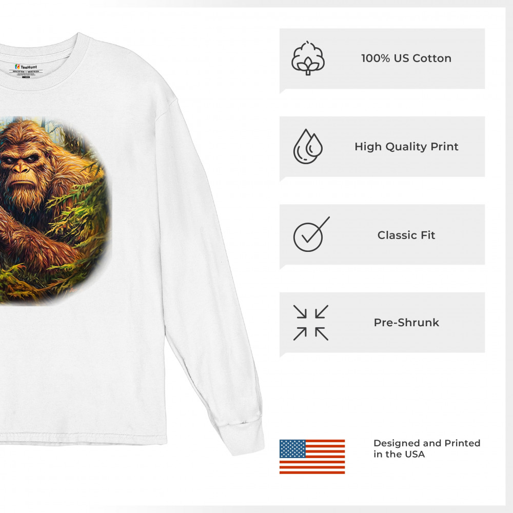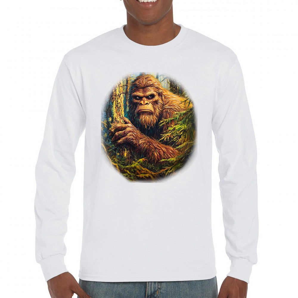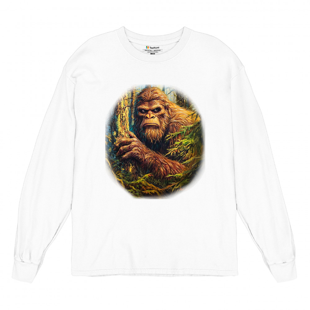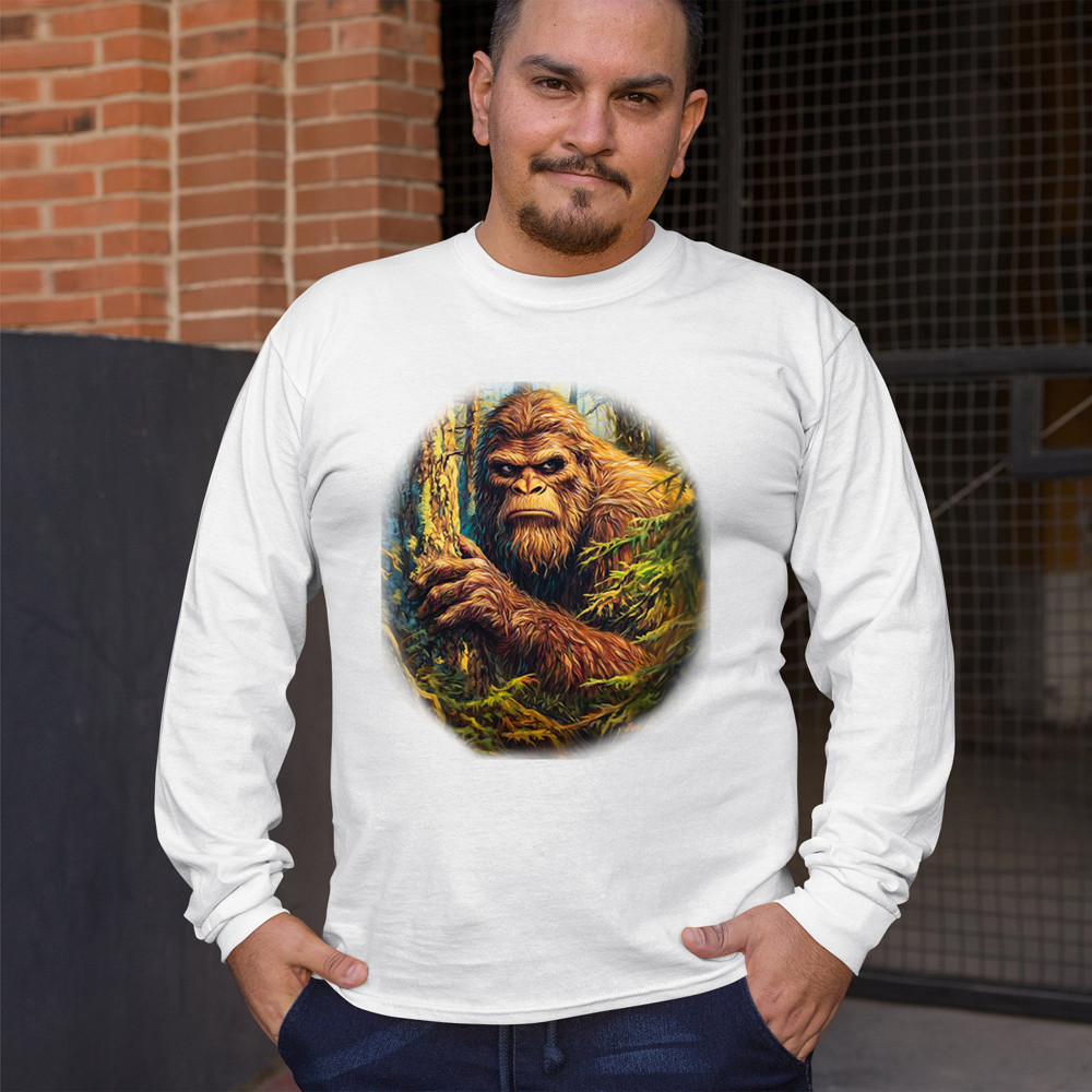 Detailed Bigfoot design with forest mystery vibes for cryptid fans, hikers, and Sasquatch lovers. Bold, outdoorsy, and perfect for adventurers.