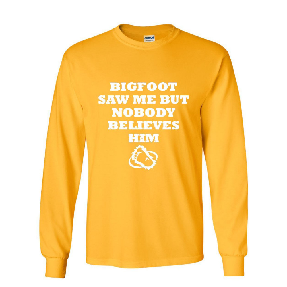 BIGFOOT SAW ME BUT NOBODY BELIEVES HIM long sleeve t-shirt funny yellow