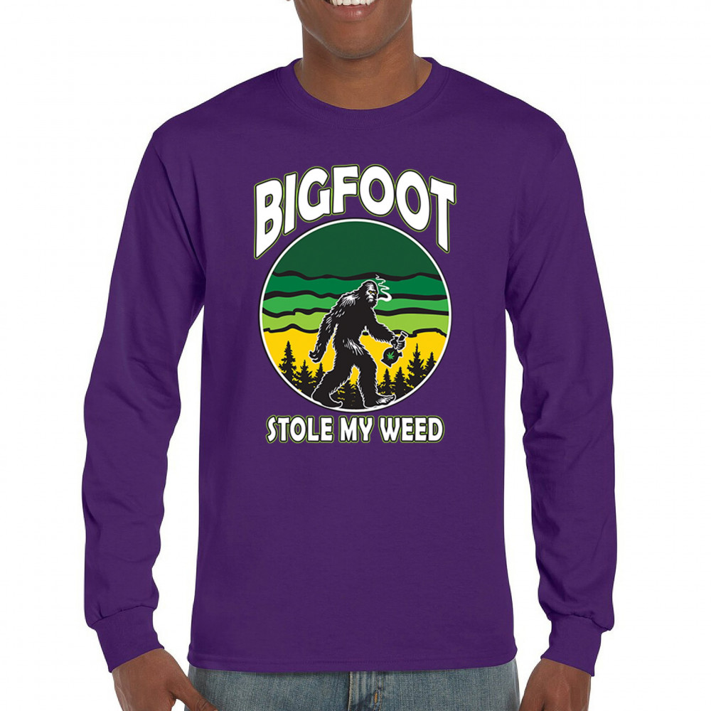 Experience the perfect blend of humor and cannabis culture with the "Bigfoot Stole My Weed" design. This playful design features a comical Bigfoot character holding a cannabis leaf, making it ideal for those who appreciate the humor and chill vibes of Mary Jane. Whether you're a pothead, enjoy stoned humor, or simply want to add some fun to your wardrobe, this design is sure to turn heads and bring smiles. Relax and embrace the trippy, laid-back lifestyle with this unique design.