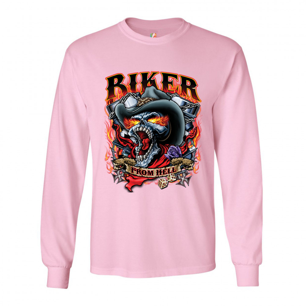 BIKER FROM HELL long sleeve t-shirt ride or die skeleton outlaw route 66 pink