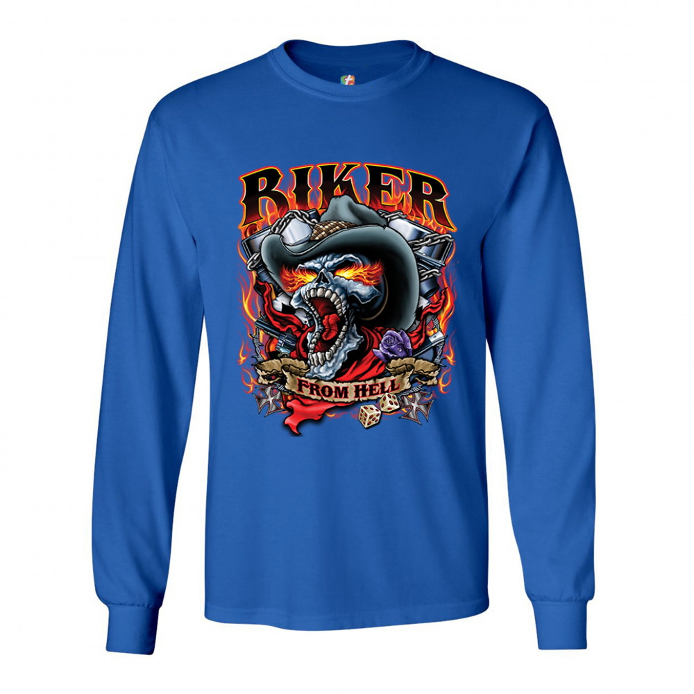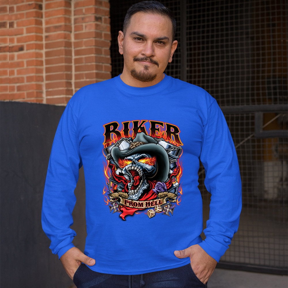 BIKER FROM HELL long sleeve t-shirt ride or die skeleton outlaw route 66 royal blue