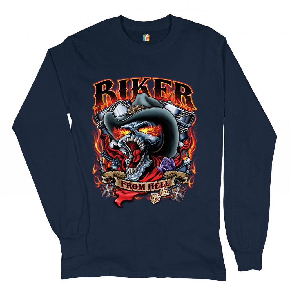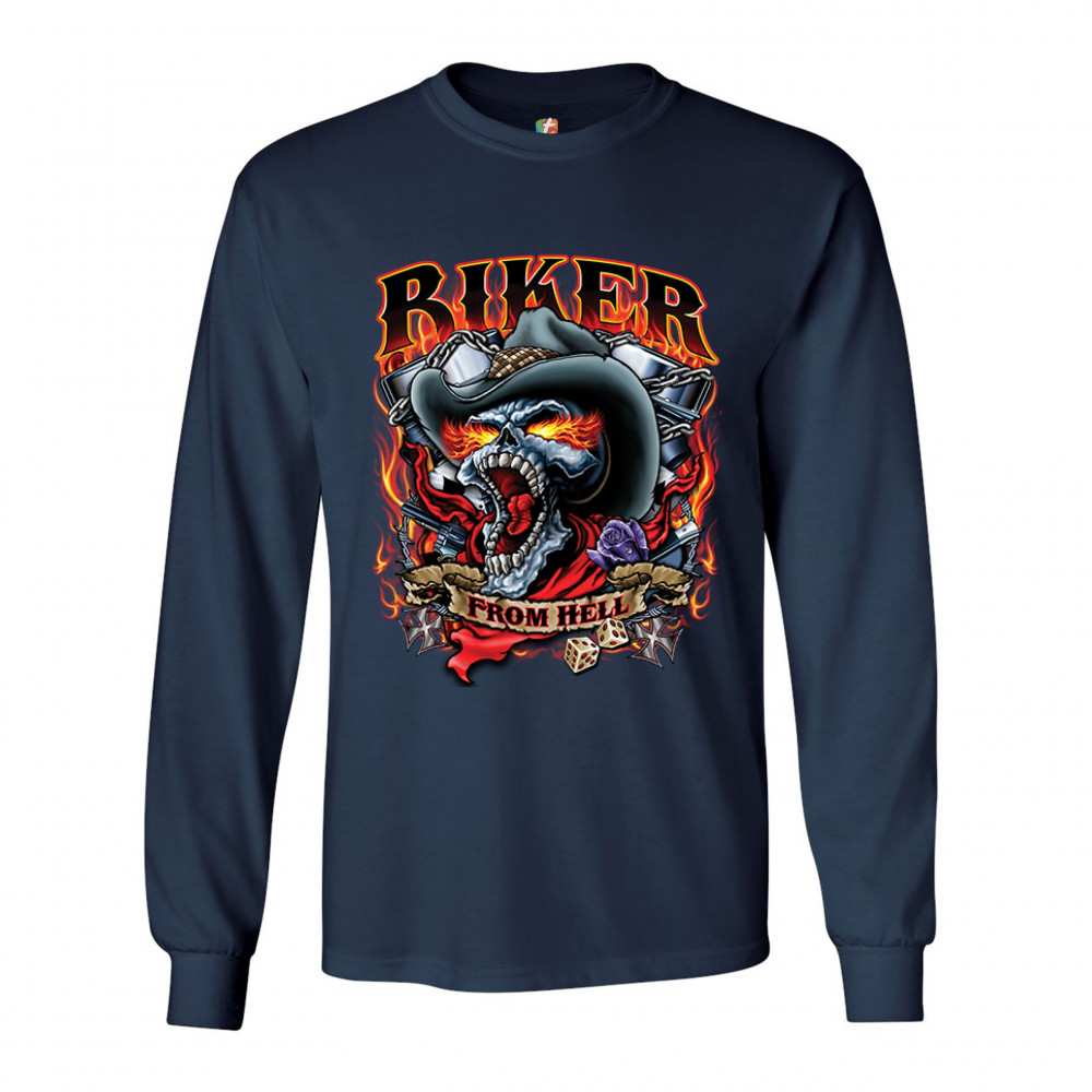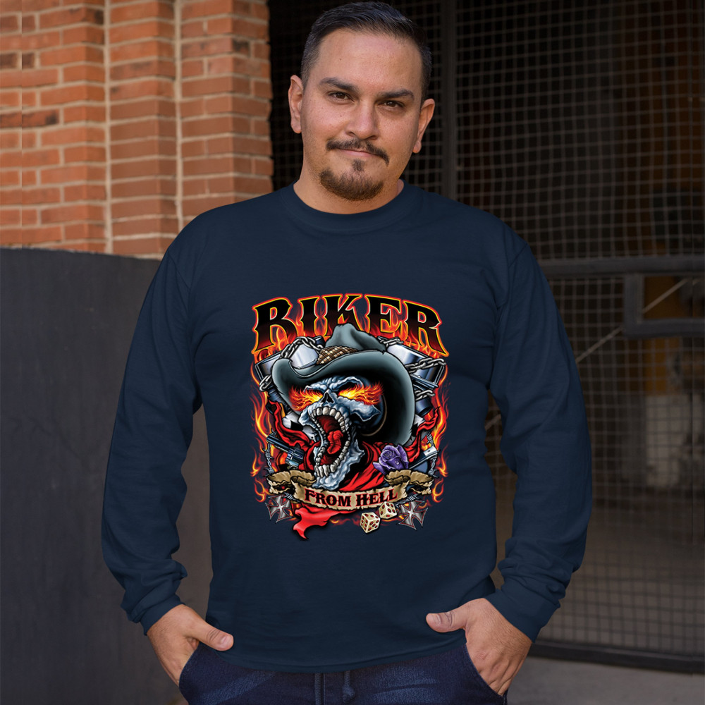 BIKER FROM HELL long sleeve t-shirt ride or die skeleton outlaw route 66 navy blue
