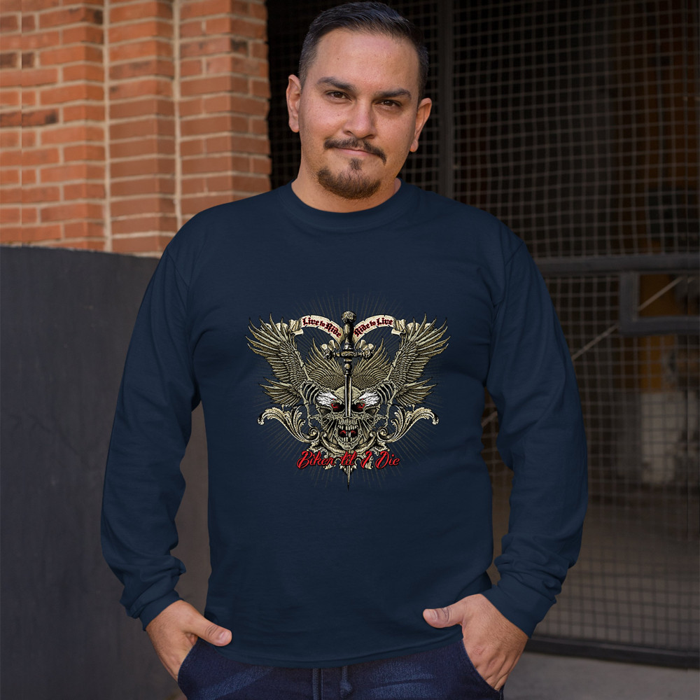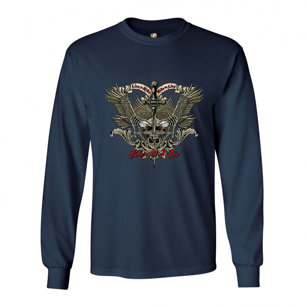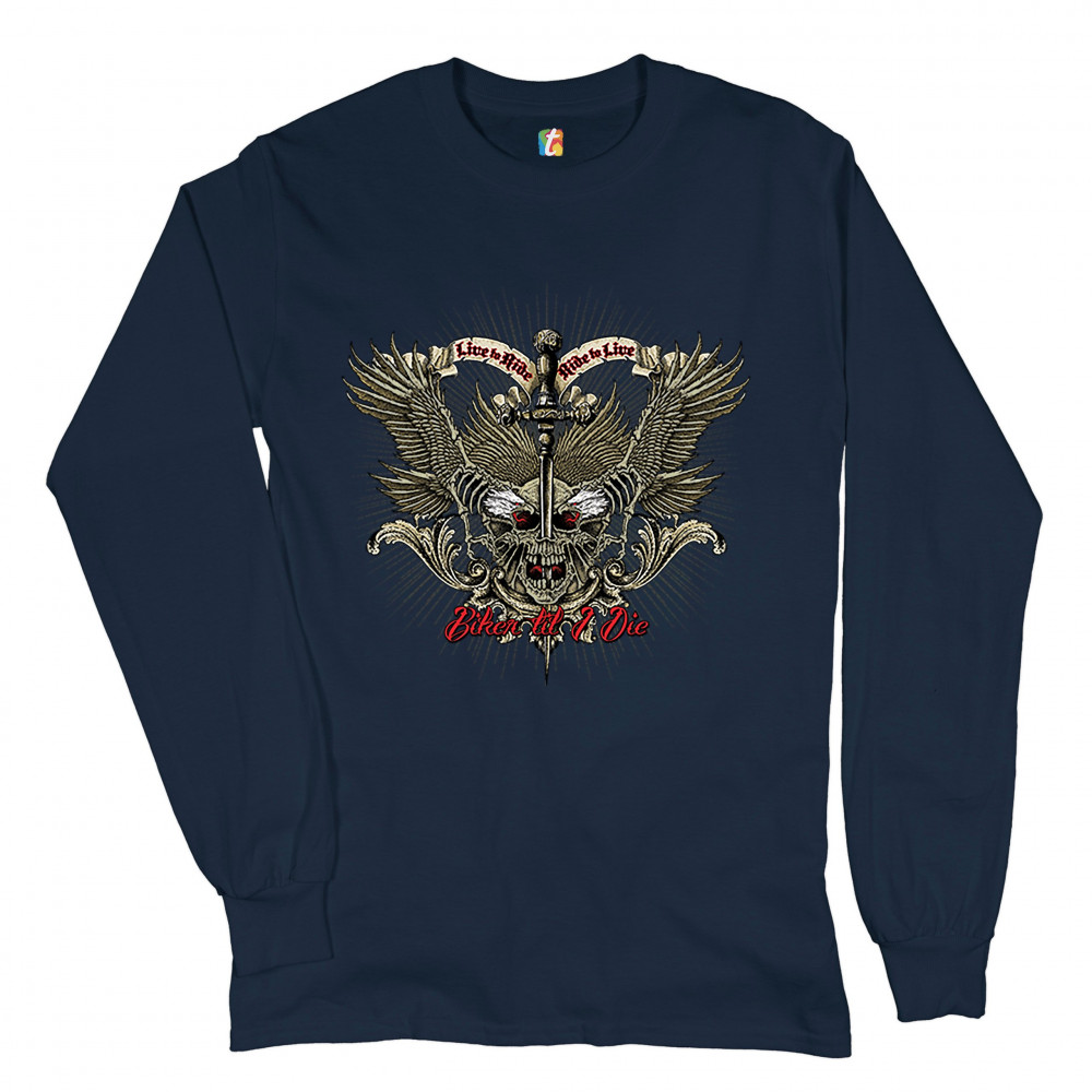 BIKER TIL I DIE long sleeve t-shirt live to ride biker forever skull face navy blue