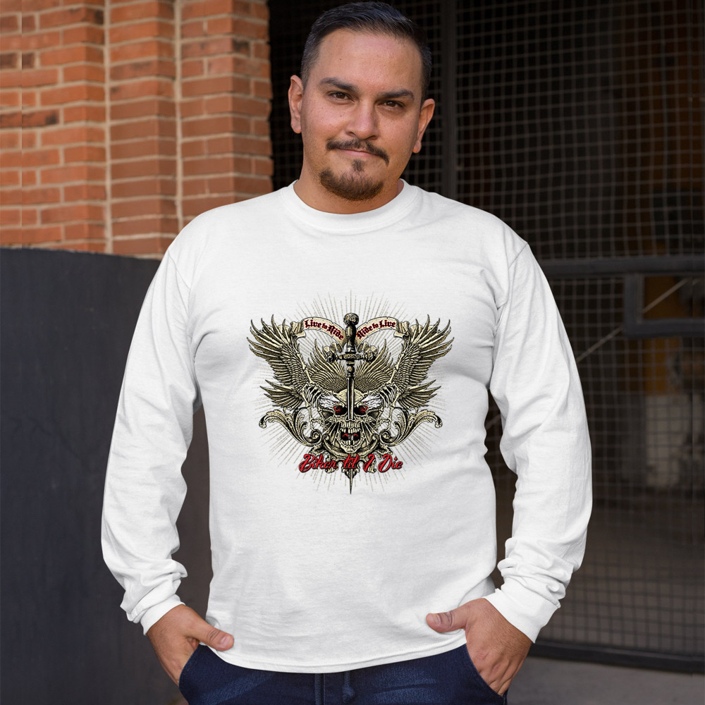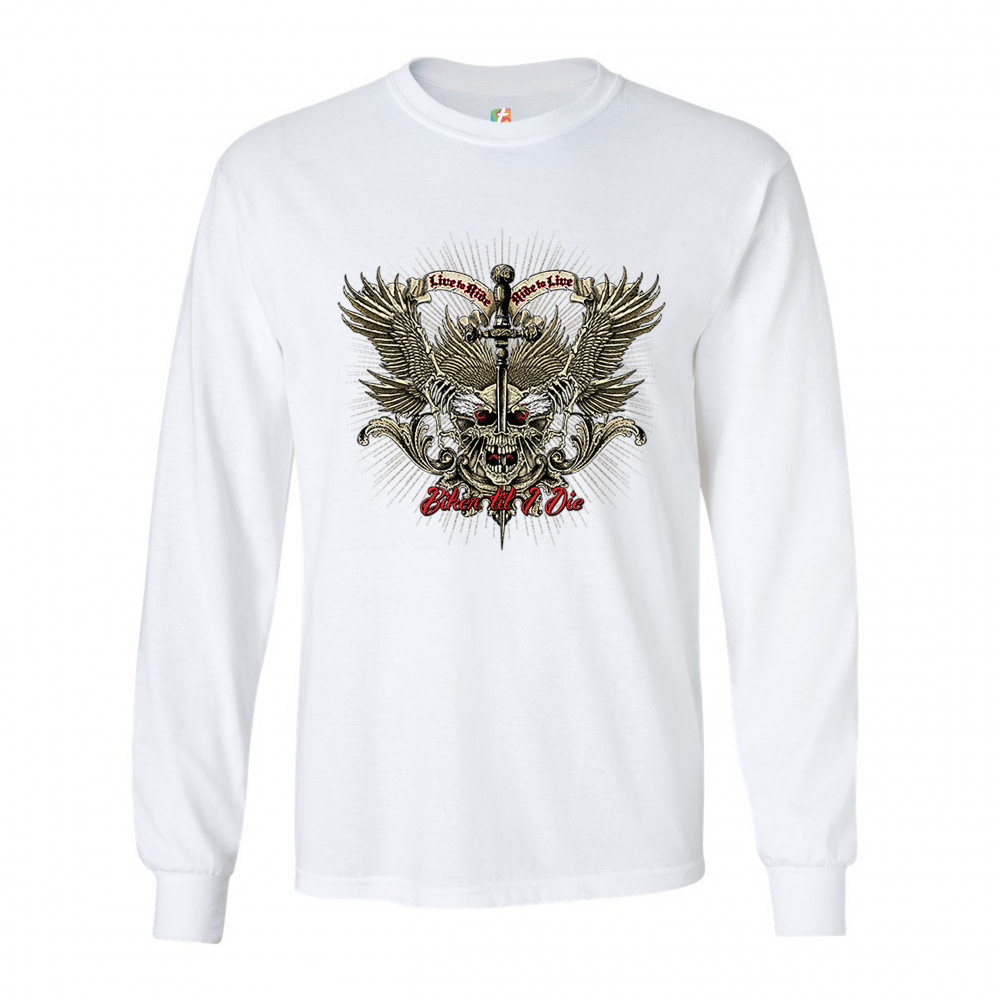 BIKER TIL I DIE long sleeve t-shirt live to ride biker forever skull face white