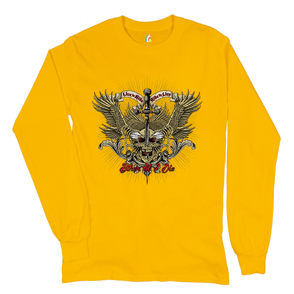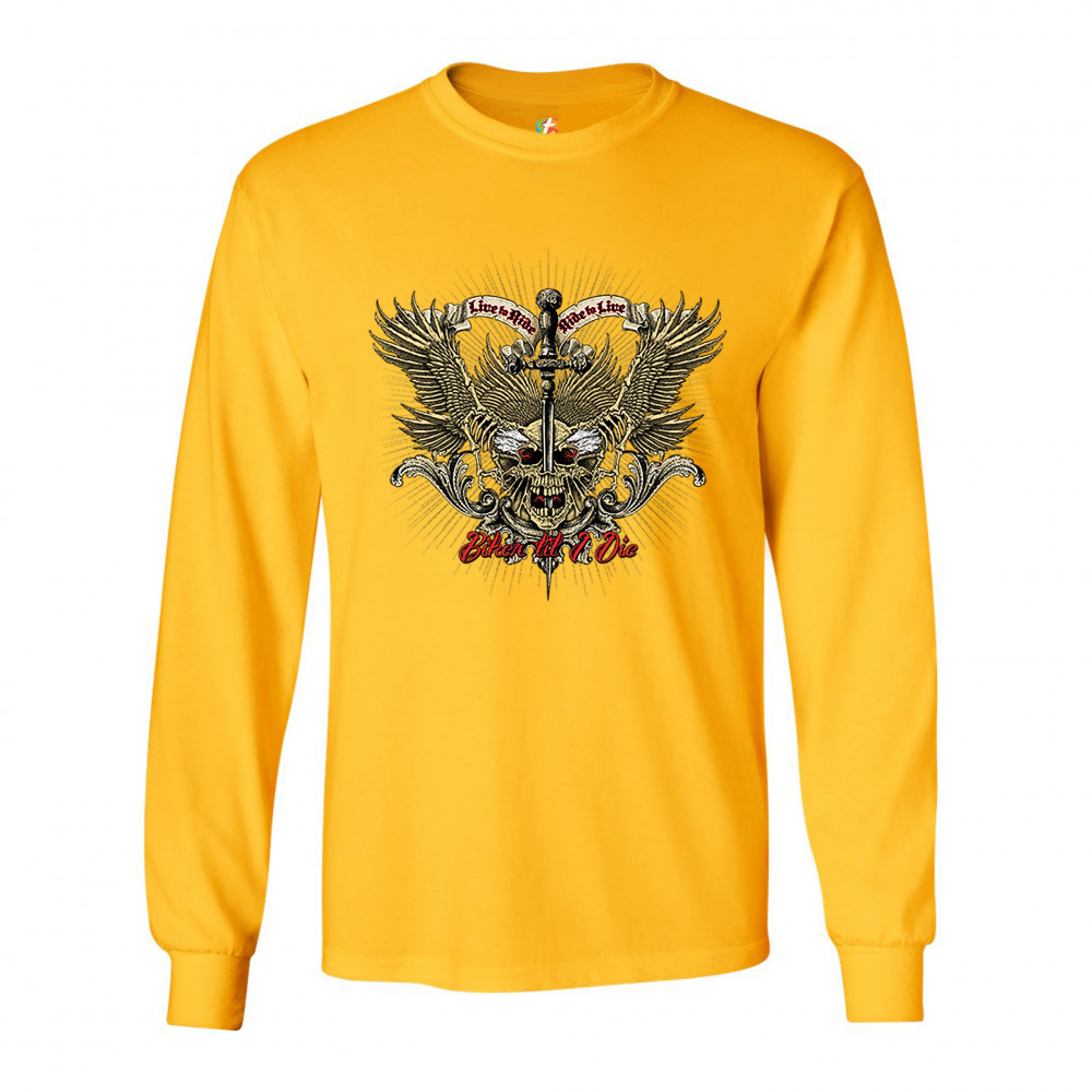 BIKER TIL I DIE long sleeve t-shirt live to ride biker forever skull face yellow