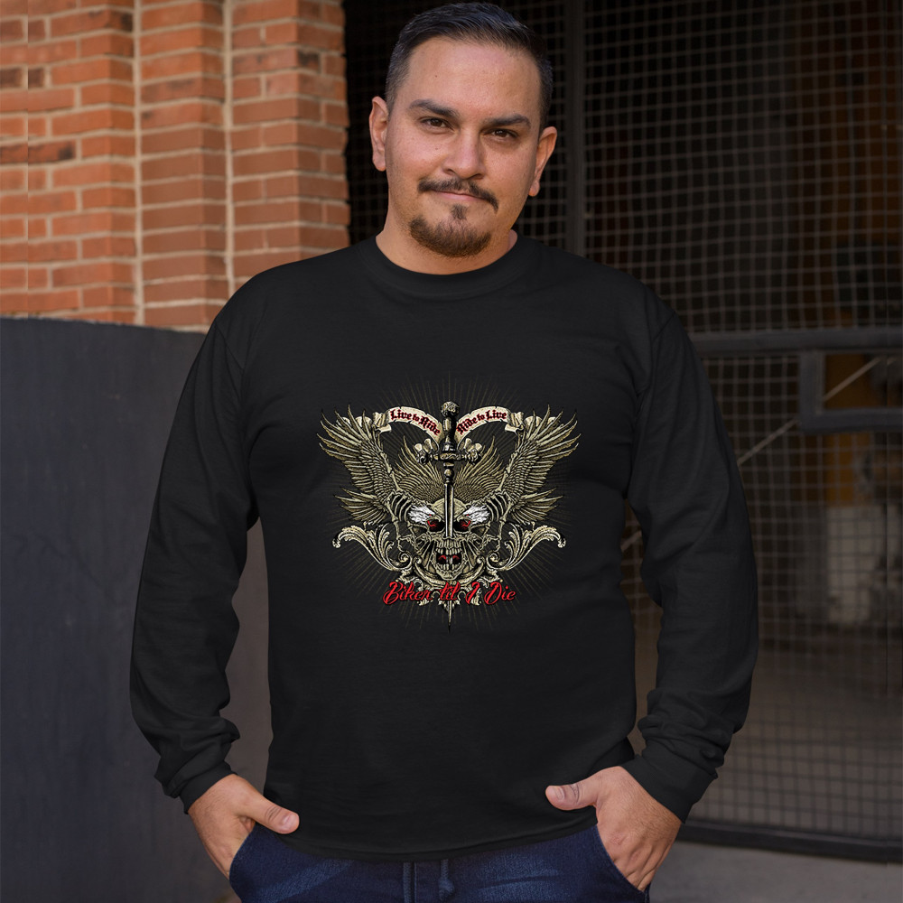 BIKER TIL I DIE long sleeve t-shirt live to ride biker forever skull face black