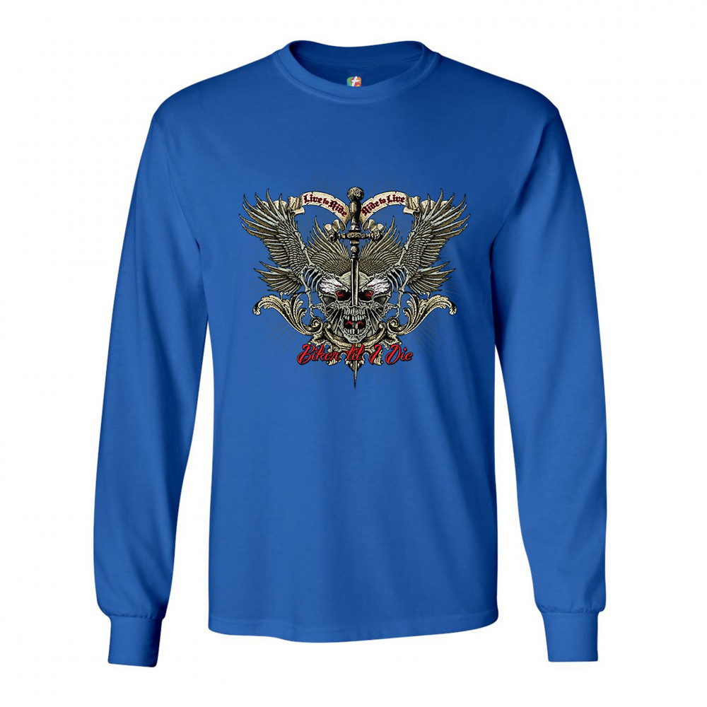 BIKER TIL I DIE long sleeve t-shirt live to ride biker forever skull face royal blue