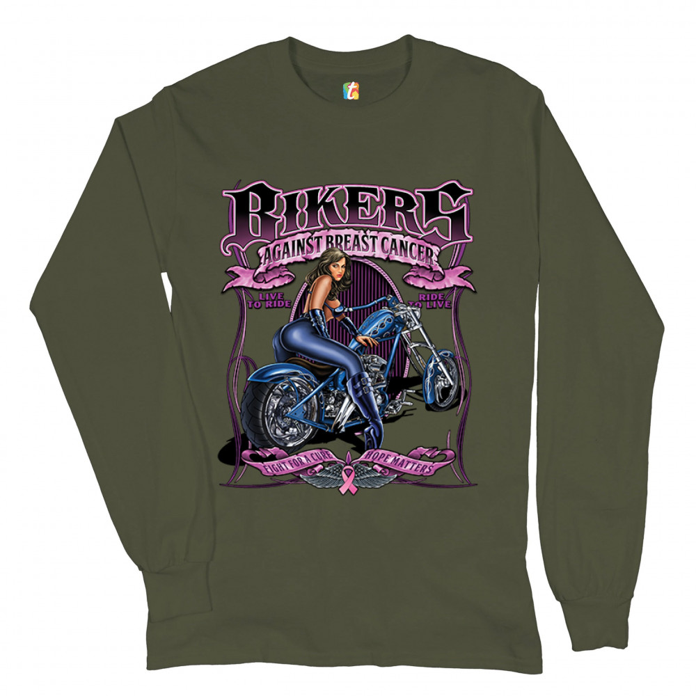 BIKERS AGAINST BREAST CANCER long sleeve t-shirt fight for a cure hope matters military green