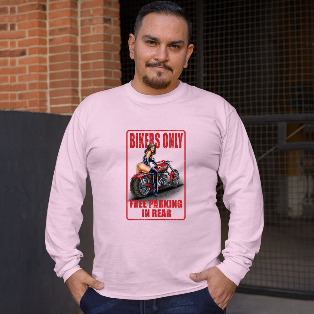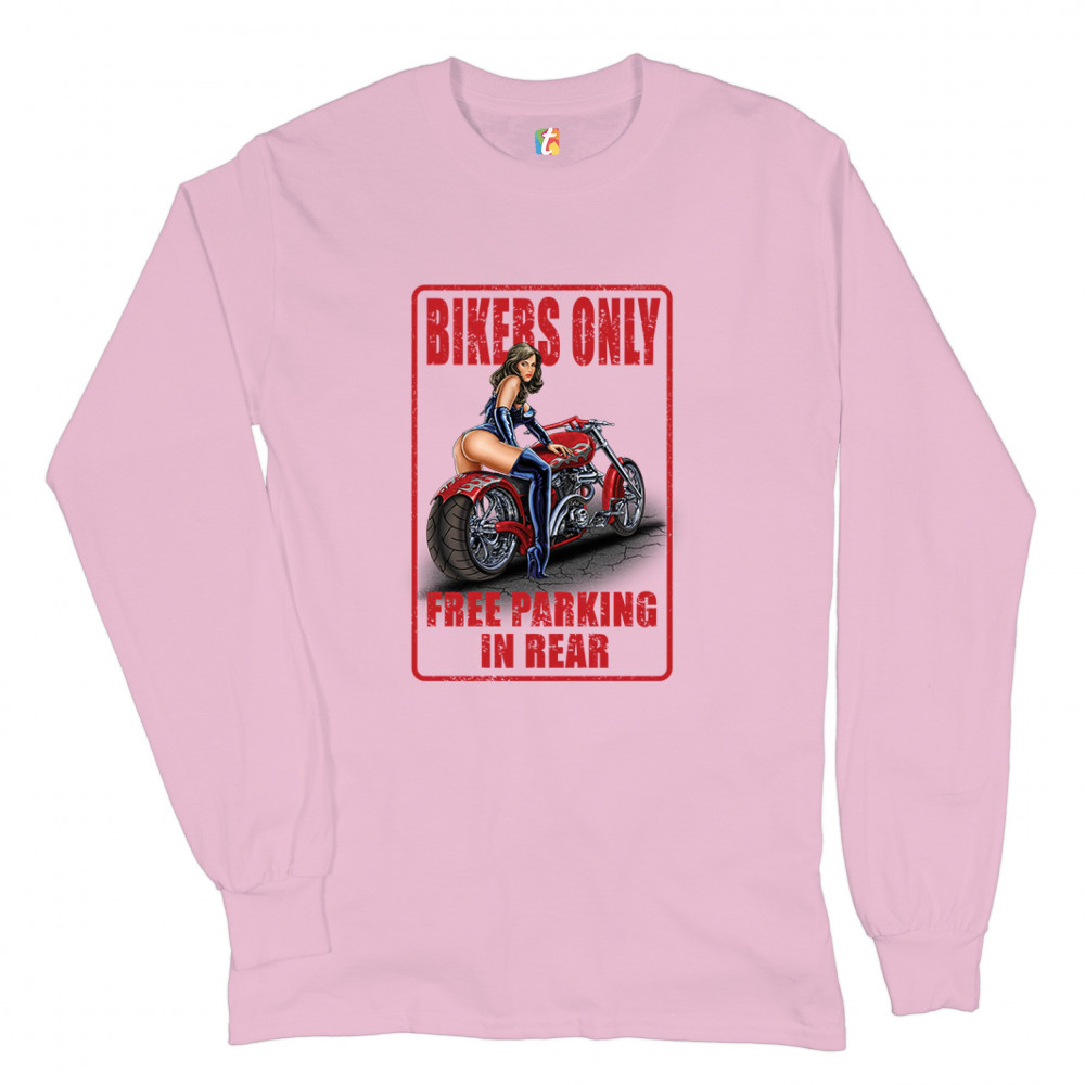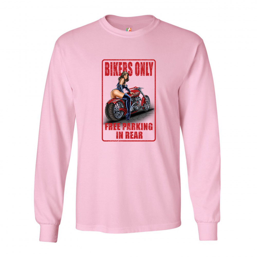 BIKERS ONLY FREE PARKING IN REAR long sleeve t-shirt funny pin-up biker chick pink