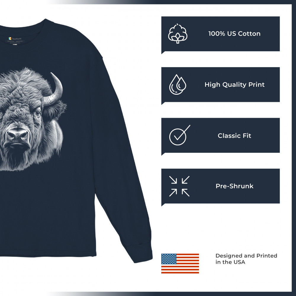 Bold bison design in detailed monochrome. Great for ranchers, patriots, and western wildlife lovers. Show your love for the American plains.