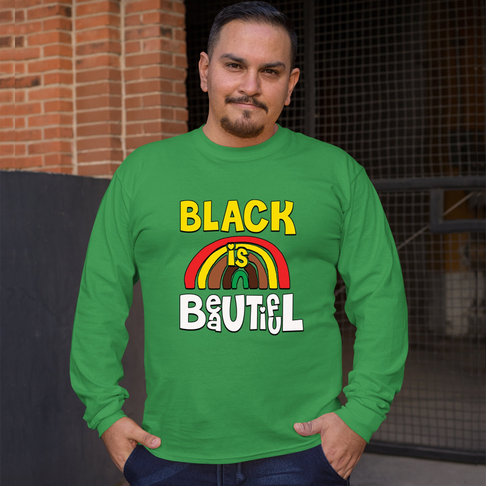 BLACK IS BEAUTIFUL long sleeve t-shirt african american black pride equality green