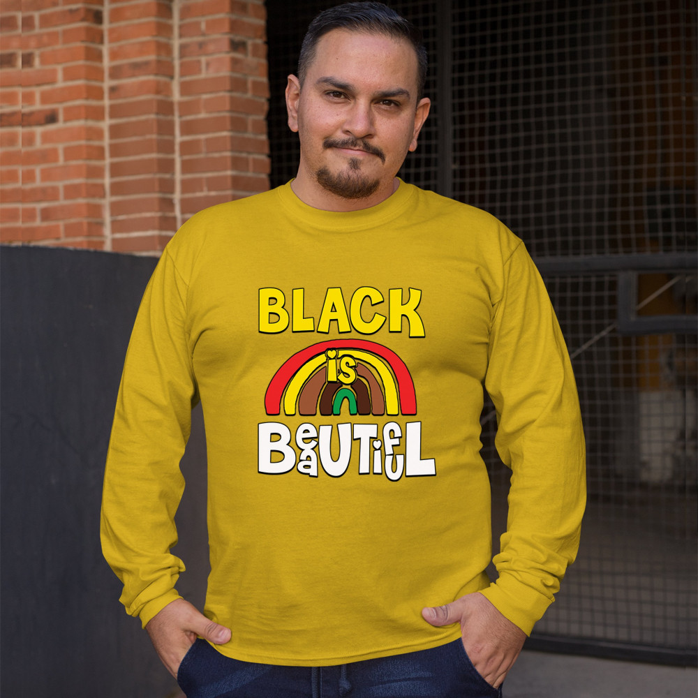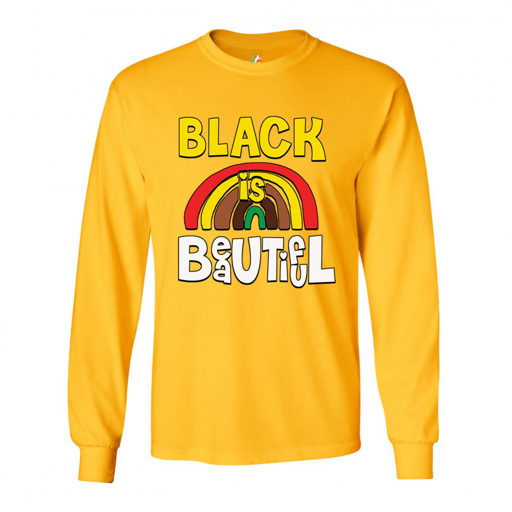 BLACK IS BEAUTIFUL long sleeve t-shirt african american black pride equality yellow
