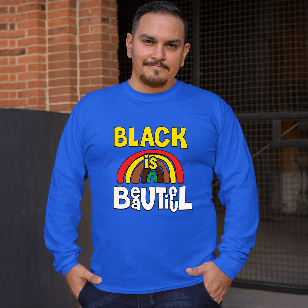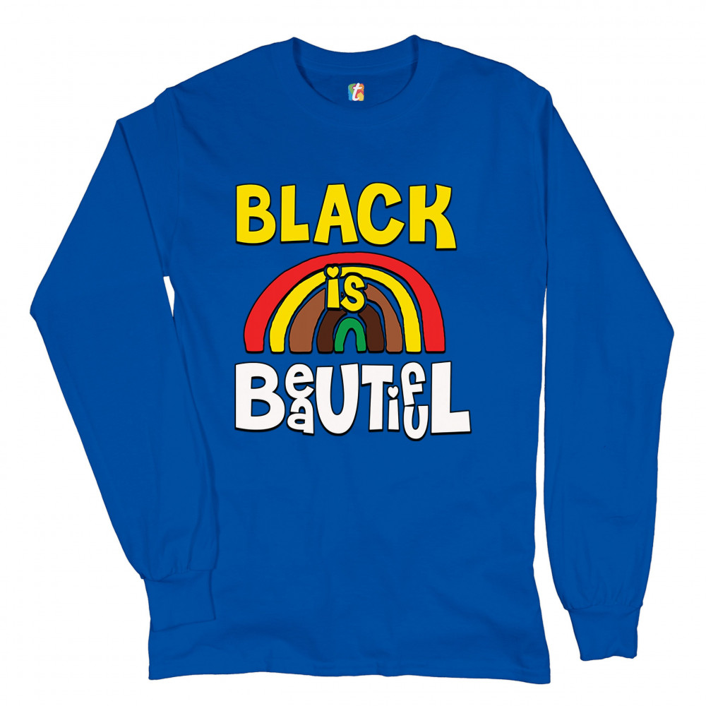 BLACK IS BEAUTIFUL long sleeve t-shirt african american black pride equality royal blue