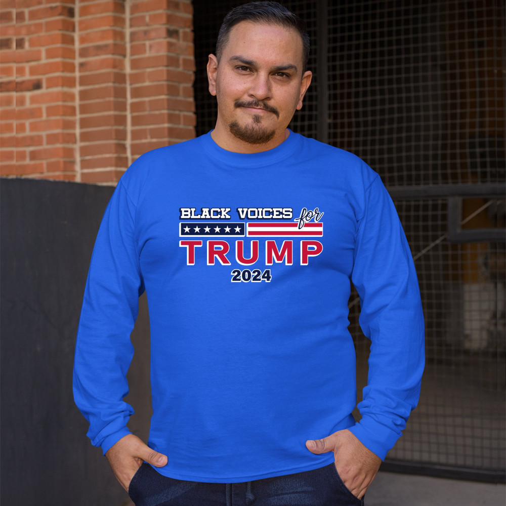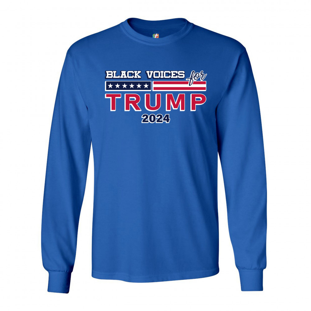 BLACK VOICES FOR TRUMP long sleeve t-shirt donald trump 2024 stars and stripes royal blue