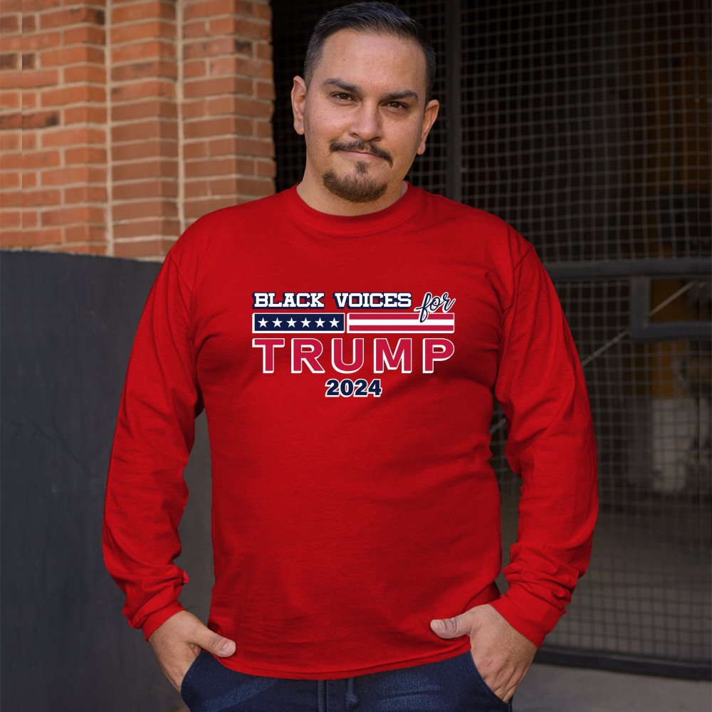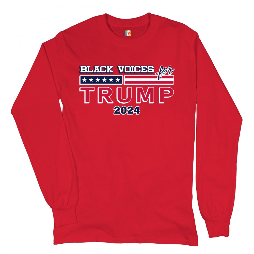 BLACK VOICES FOR TRUMP long sleeve t-shirt donald trump 2024 stars and stripes red