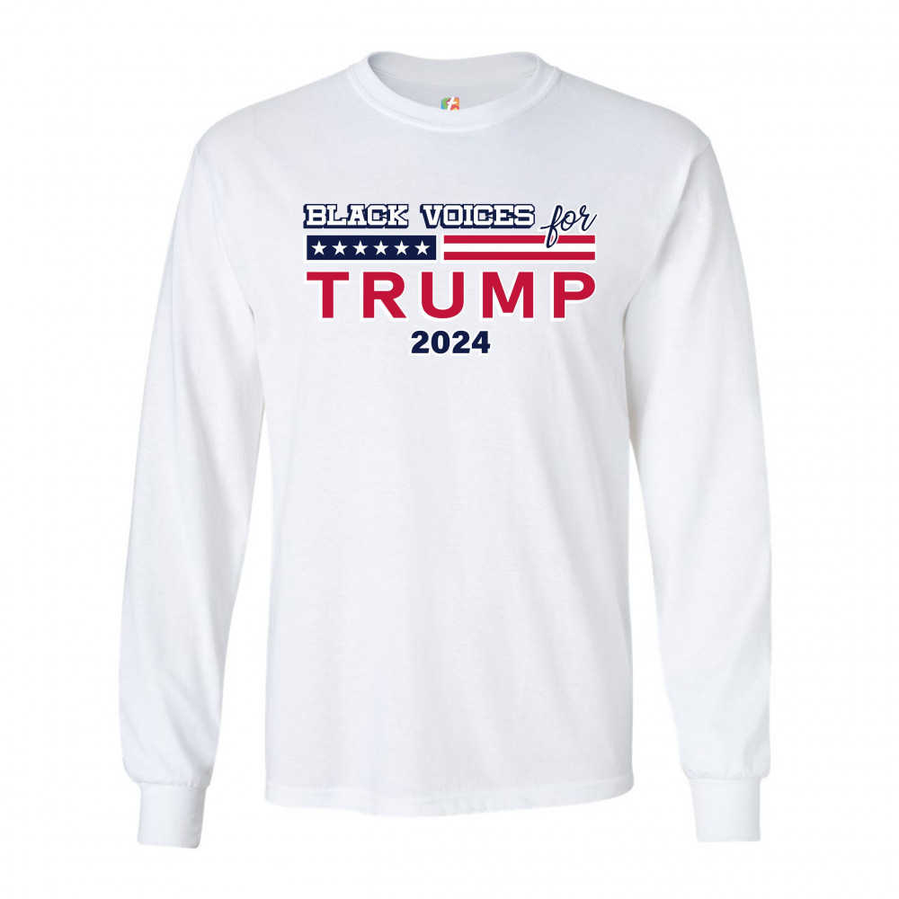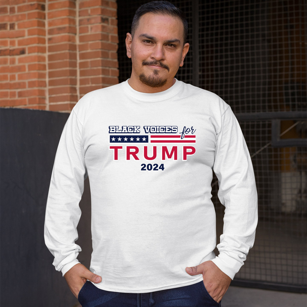 BLACK VOICES FOR TRUMP long sleeve t-shirt donald trump 2024 stars and stripes white