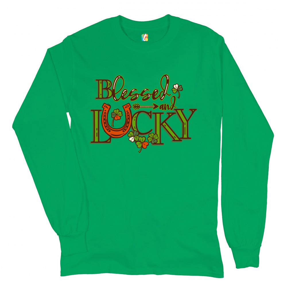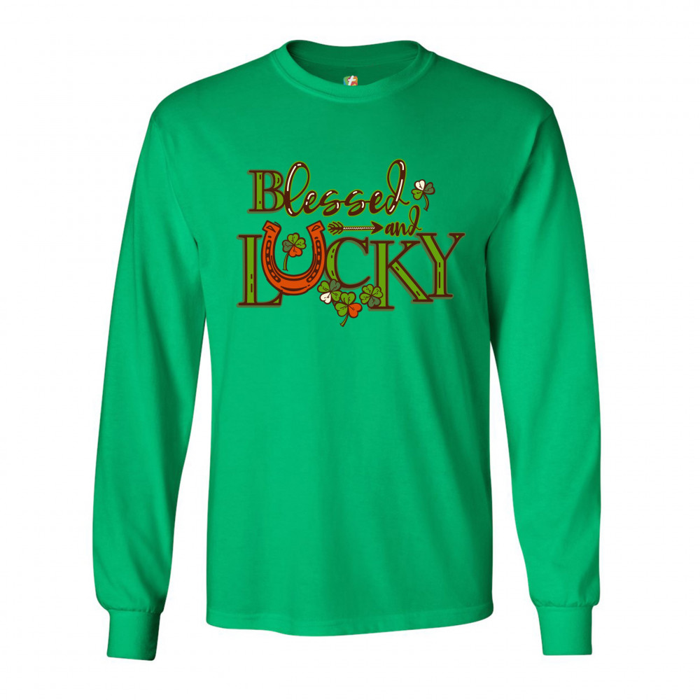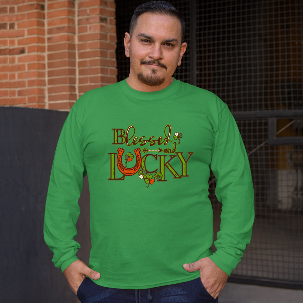 BLESSED AND LUCKY long sleeve t-shirt st. patrick's day clover irish malarkey green