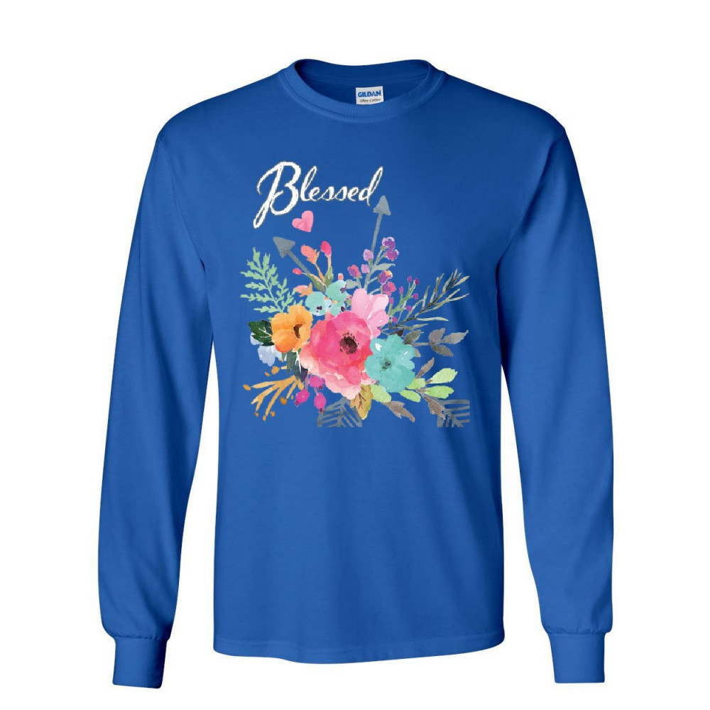 BLESSED long sleeve t-shirt love faith hope believer motivation kindness tee royal blue