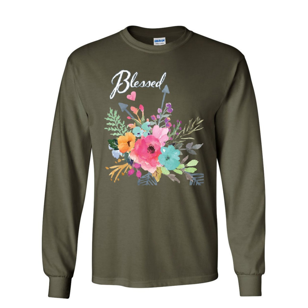 BLESSED long sleeve t-shirt love faith hope believer motivation kindness tee military green