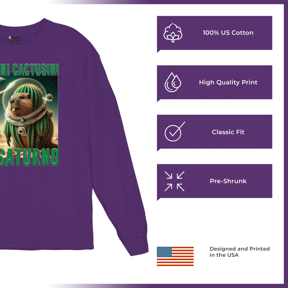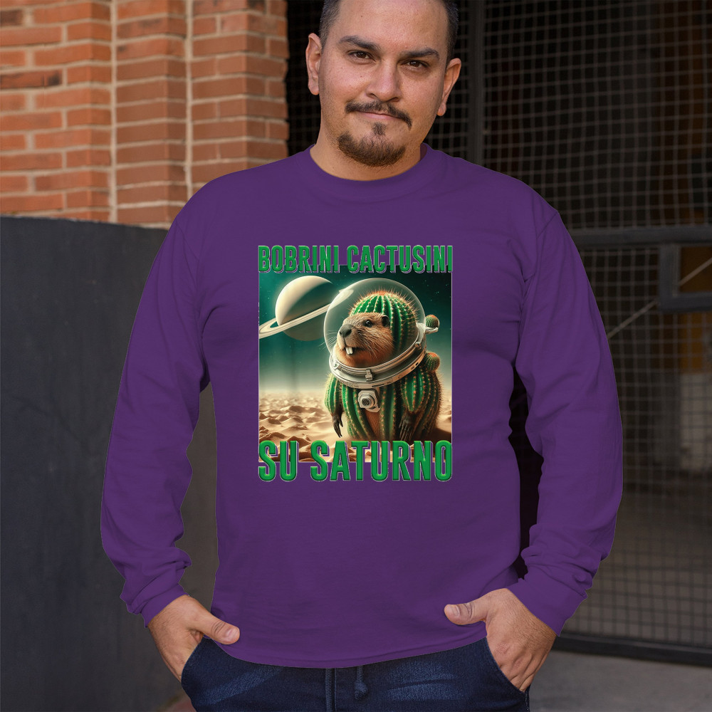 Blast off with Bobrini Cactusini Su Saturno—a cactus-beaver astronaut floating in pure brainrot. This cursed design blends space meme aesthetics, weirdcore fashion, viral Gen Z humor, and surreal animal mashups. It’s the ultimate tee for lovers of ironic internet chaos and absurdist TikTok trends.