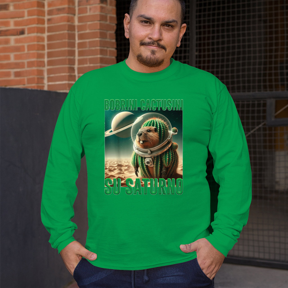 Blast off with Bobrini Cactusini Su Saturno—a cactus-beaver astronaut floating in pure brainrot. This cursed design blends space meme aesthetics, weirdcore fashion, viral Gen Z humor, and surreal animal mashups. It’s the ultimate tee for lovers of ironic internet chaos and absurdist TikTok trends.