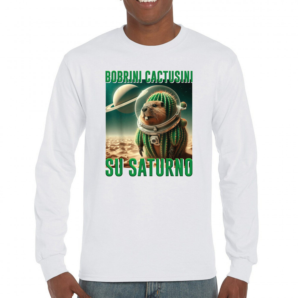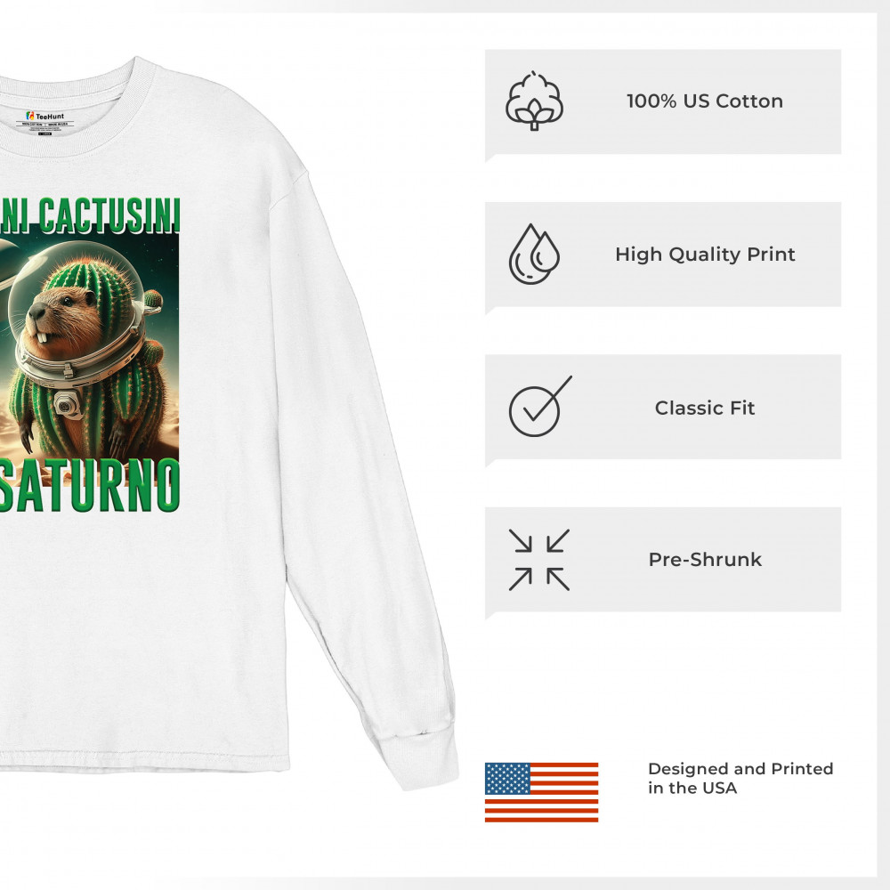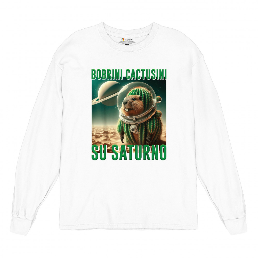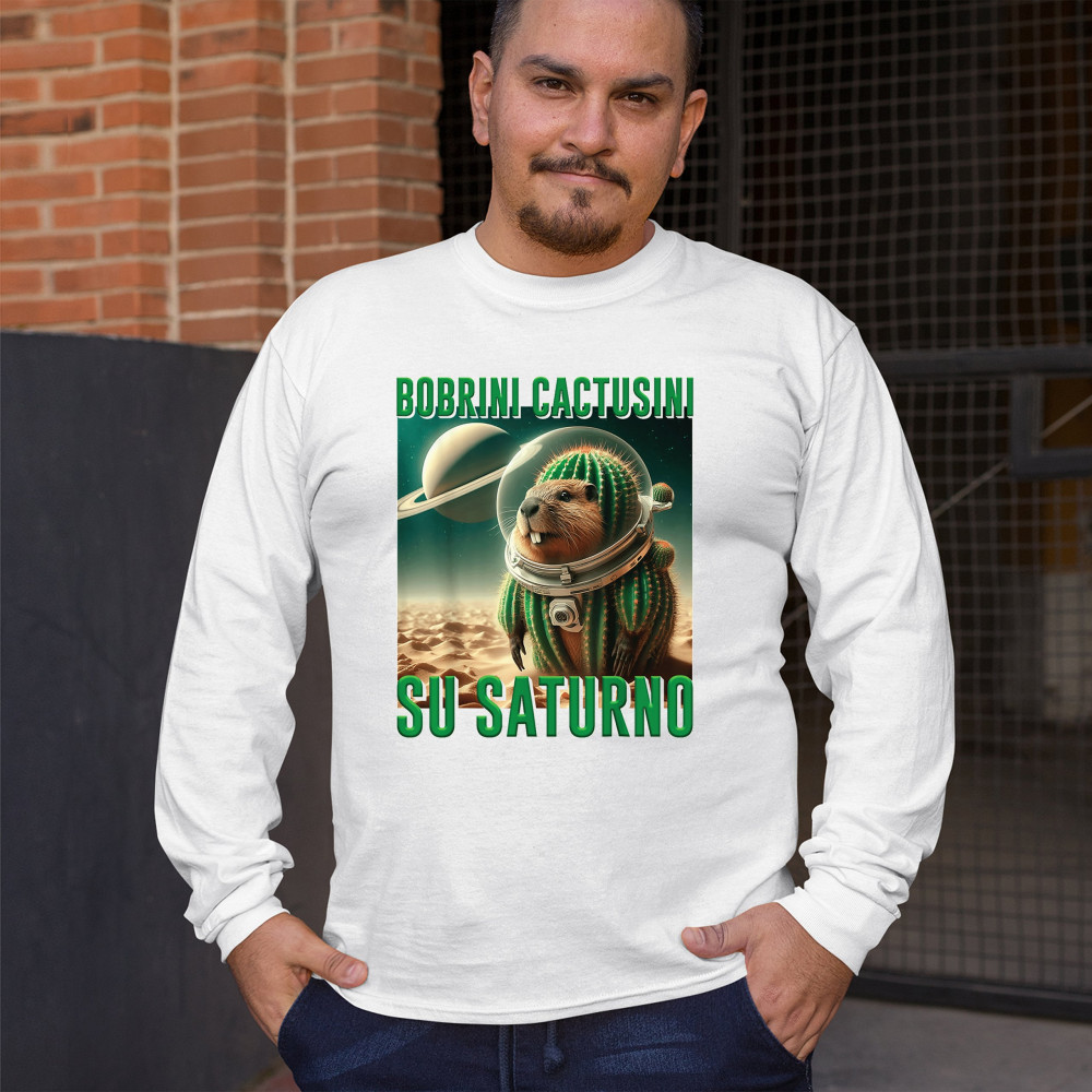 Blast off with Bobrini Cactusini Su Saturno—a cactus-beaver astronaut floating in pure brainrot. This cursed design blends space meme aesthetics, weirdcore fashion, viral Gen Z humor, and surreal animal mashups. It’s the ultimate tee for lovers of ironic internet chaos and absurdist TikTok trends.