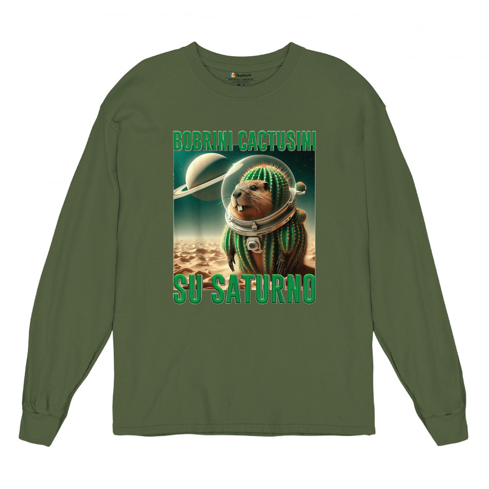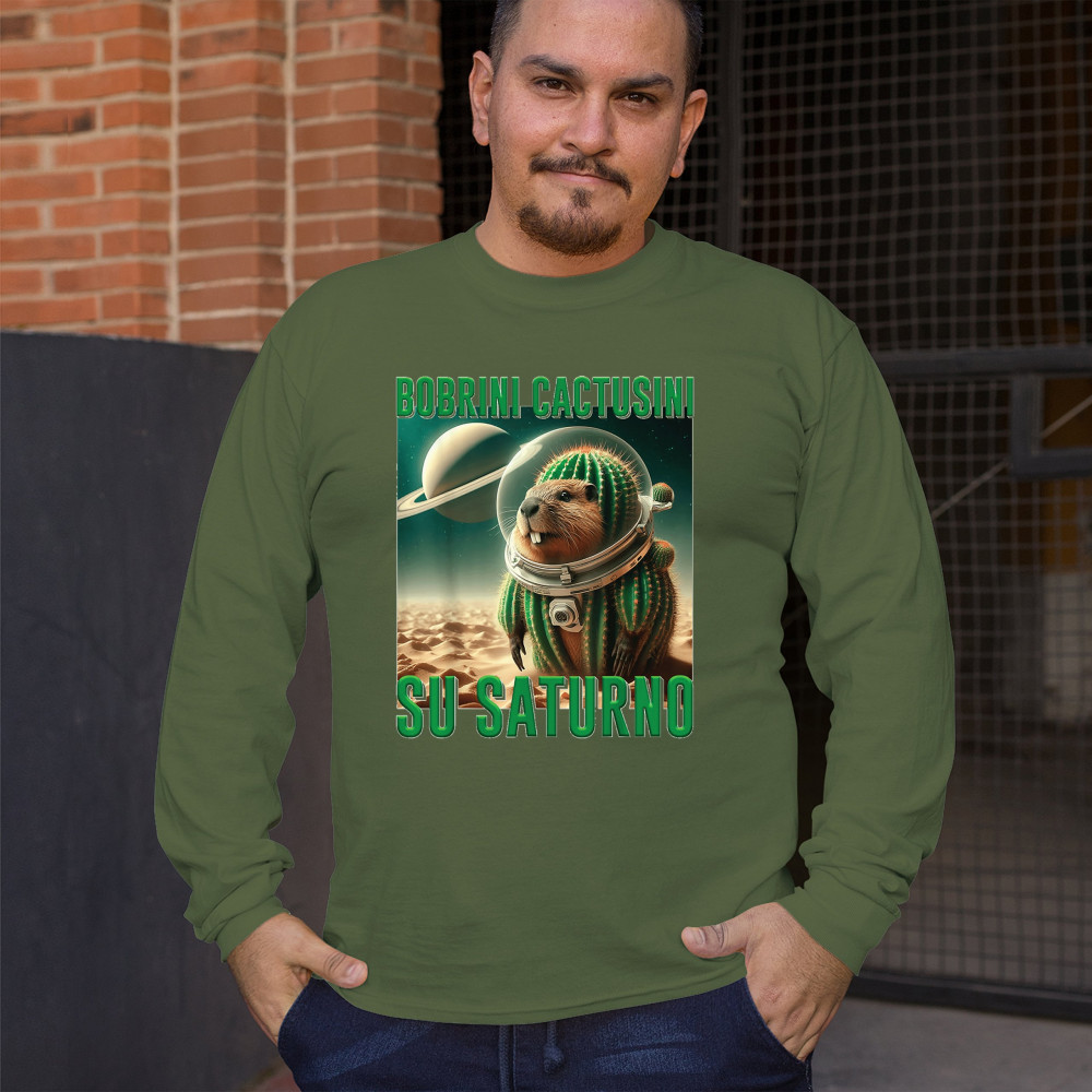 Blast off with Bobrini Cactusini Su Saturno—a cactus-beaver astronaut floating in pure brainrot. This cursed design blends space meme aesthetics, weirdcore fashion, viral Gen Z humor, and surreal animal mashups. It’s the ultimate tee for lovers of ironic internet chaos and absurdist TikTok trends.