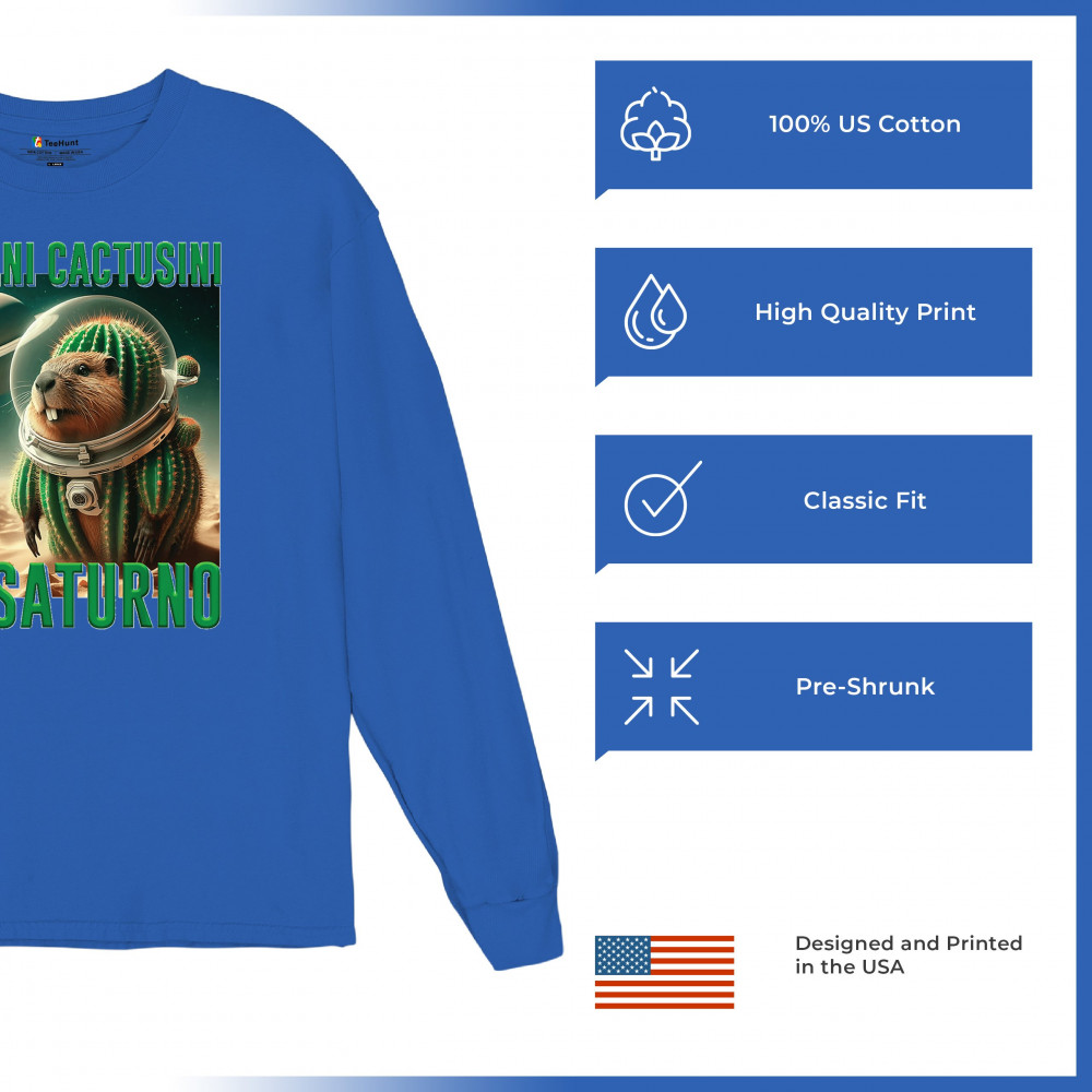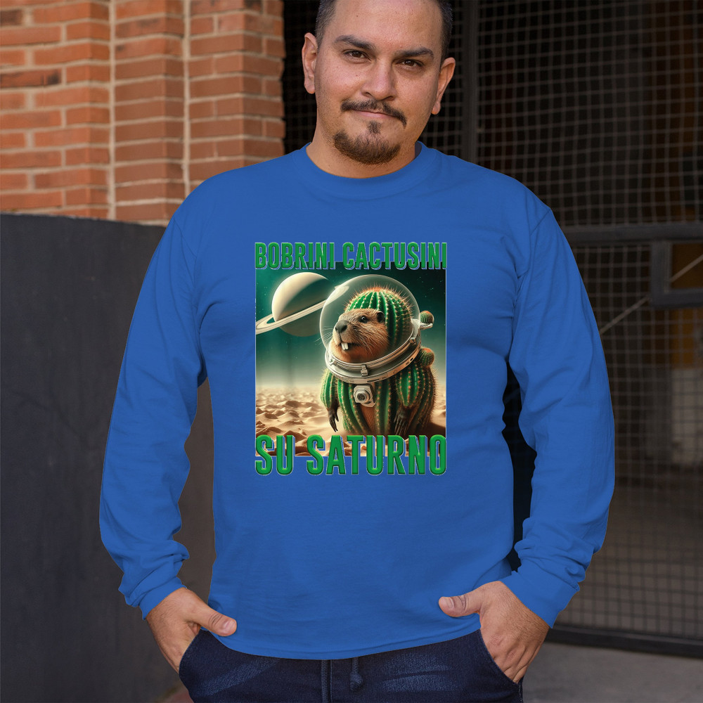 Blast off with Bobrini Cactusini Su Saturno—a cactus-beaver astronaut floating in pure brainrot. This cursed design blends space meme aesthetics, weirdcore fashion, viral Gen Z humor, and surreal animal mashups. It’s the ultimate tee for lovers of ironic internet chaos and absurdist TikTok trends.