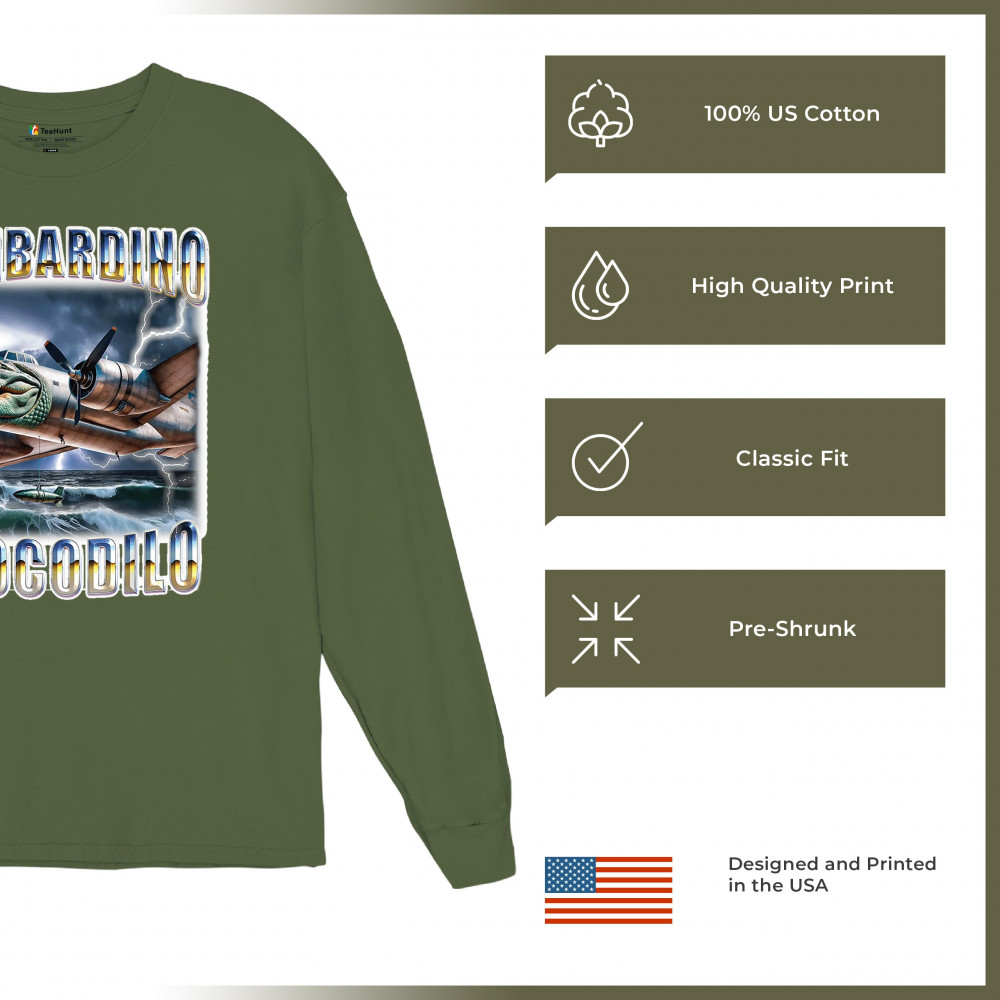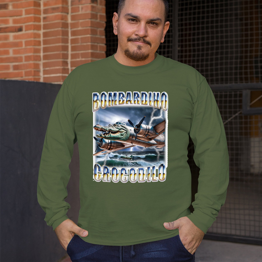 Bombardino Crocodilo is meme fashion with teeth. Featuring a crocodile-faced bomber jet flying through internet chaos, this Italian Brainrot masterpiece blends weirdcore visuals, cursed meme logic, and Gen Z humor. Perfect for fans of surreal fashion, viral absurdity, and TikTok-driven ironic style.