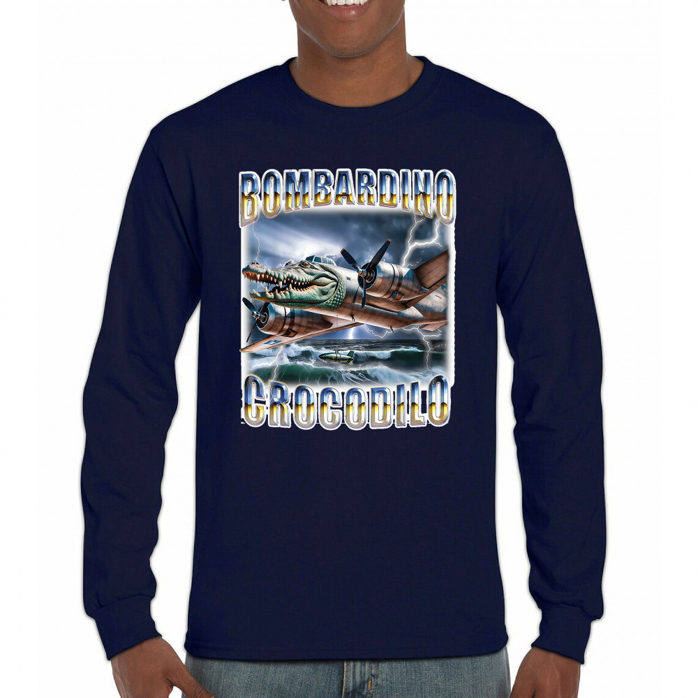 Bombardino Crocodilo is meme fashion with teeth. Featuring a crocodile-faced bomber jet flying through internet chaos, this Italian Brainrot masterpiece blends weirdcore visuals, cursed meme logic, and Gen Z humor. Perfect for fans of surreal fashion, viral absurdity, and TikTok-driven ironic style.
