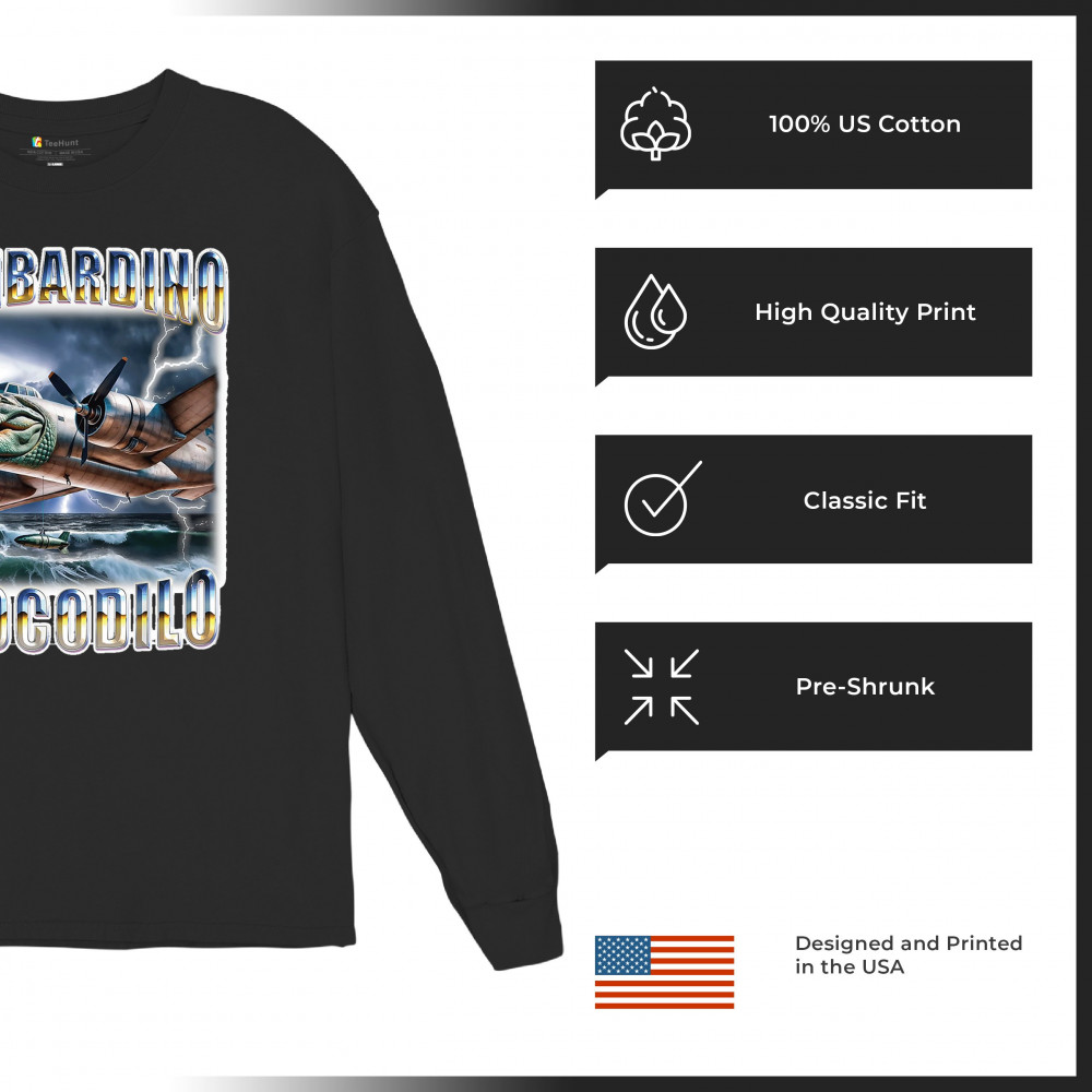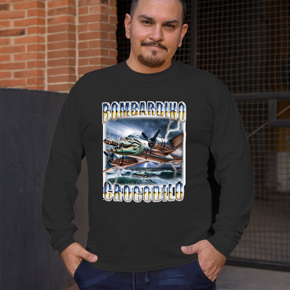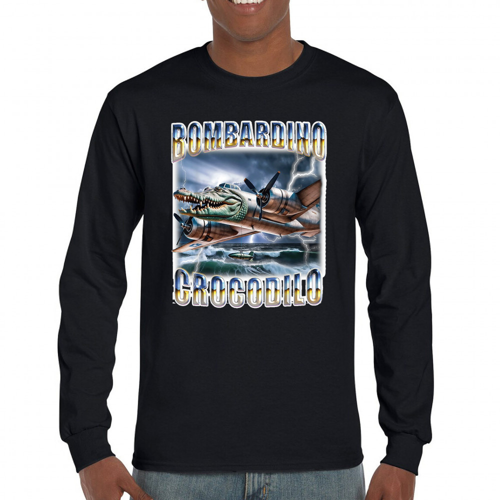 BOMBARDINO CROCODILO long sleeve t-shirt italian brainrot gen z alpha meme black