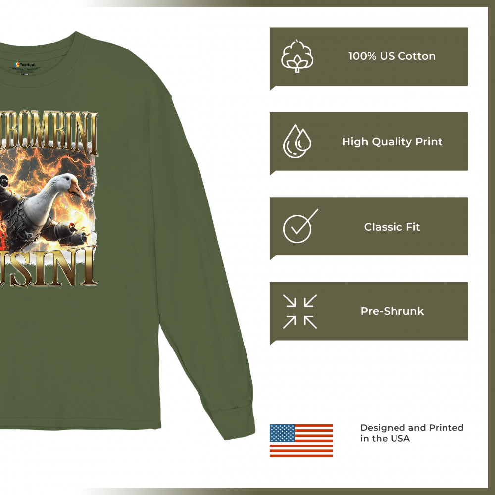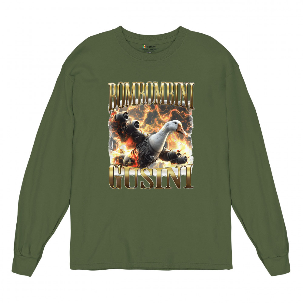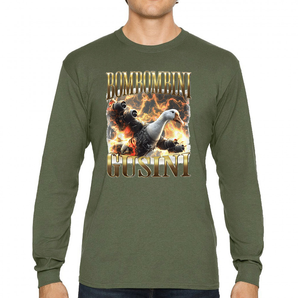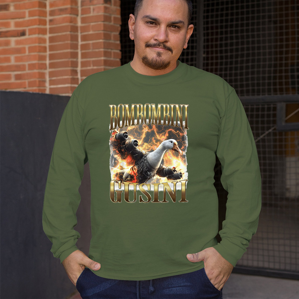Bombombini Gusini is meme chaos at Mach speed. Featuring a mechanized goose powered by pure Italian Brainrot energy, this design blends cursed-core humor, Gen Z absurdity, ironic fashion, and weirdcore visuals. Perfect for animal meme fans, TikTok-core addicts, and anyone whose humor is completely unhinged.